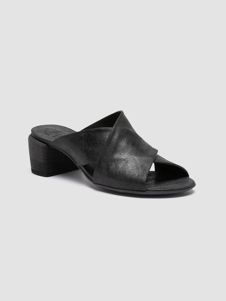 Black Leather Mule Sandals