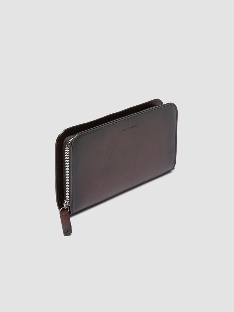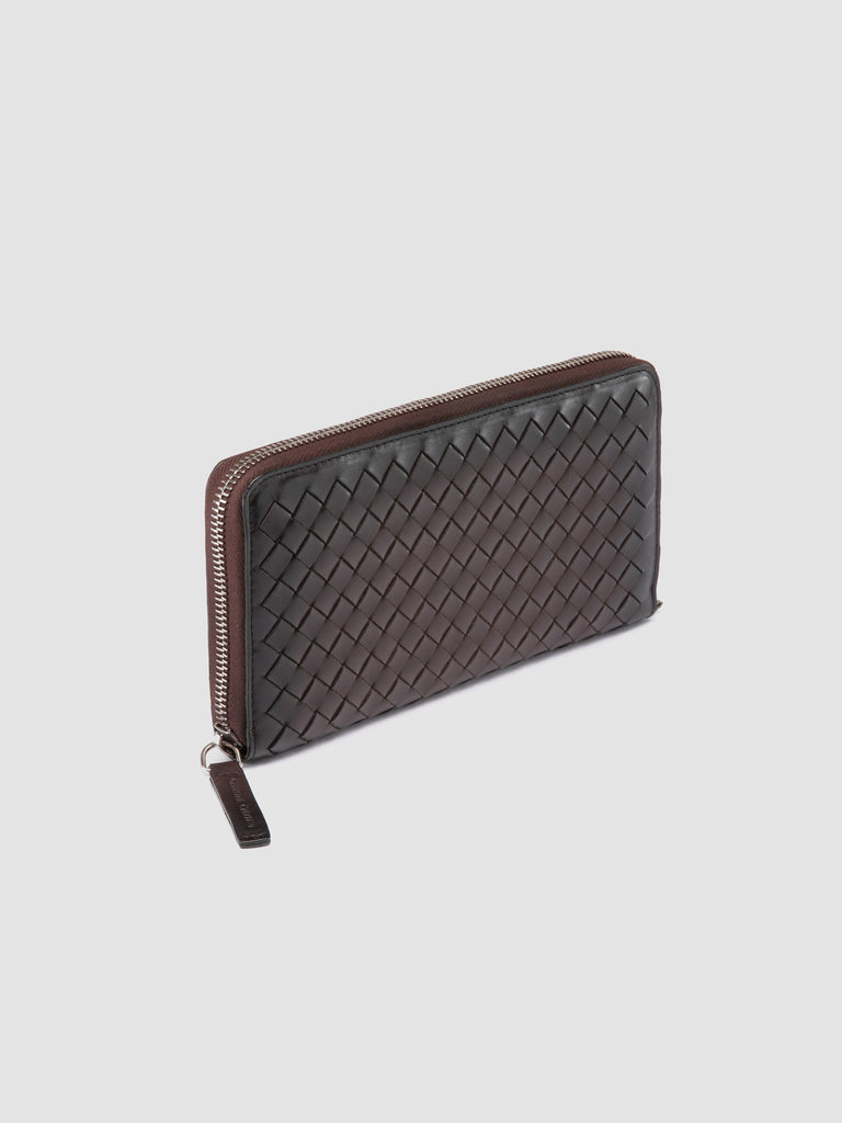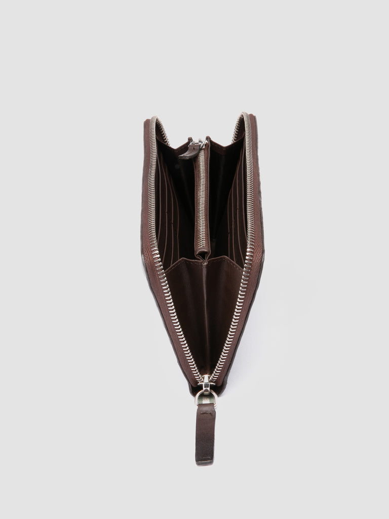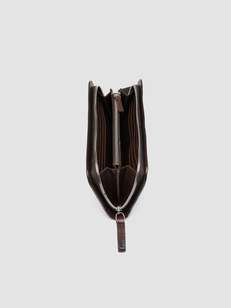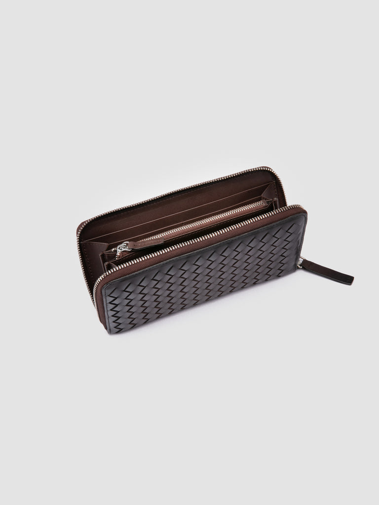 braune Lederbrieftasche mit umlaufendem Reißverschluss