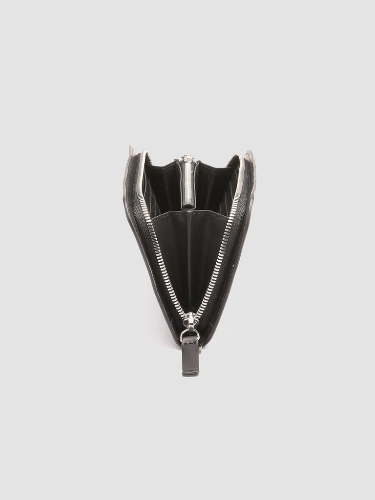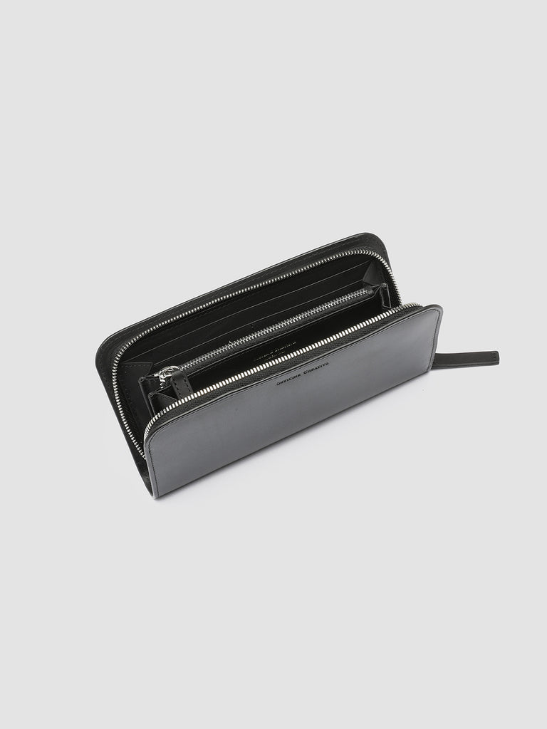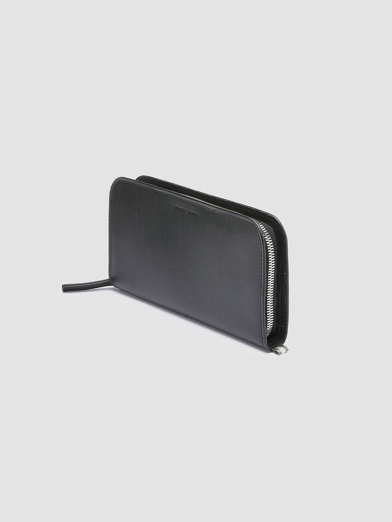 schwarze Lederbrieftasche mit umlaufendem Reißverschluss