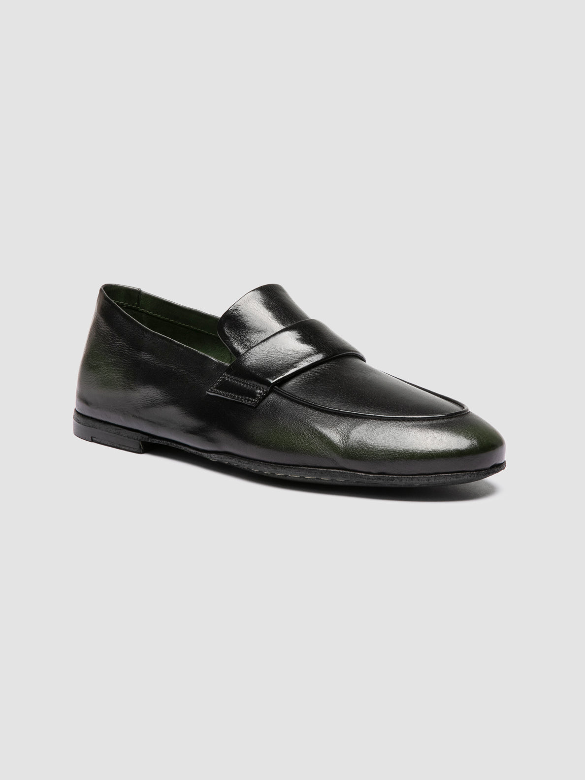 The Airto DD 001 reworks the classic penny loafer with a relaxed, slipper-like structure. The airbrushed finish enhances the natural depth of the black upper, set on a flexible leather sole with a low stacked heel.
