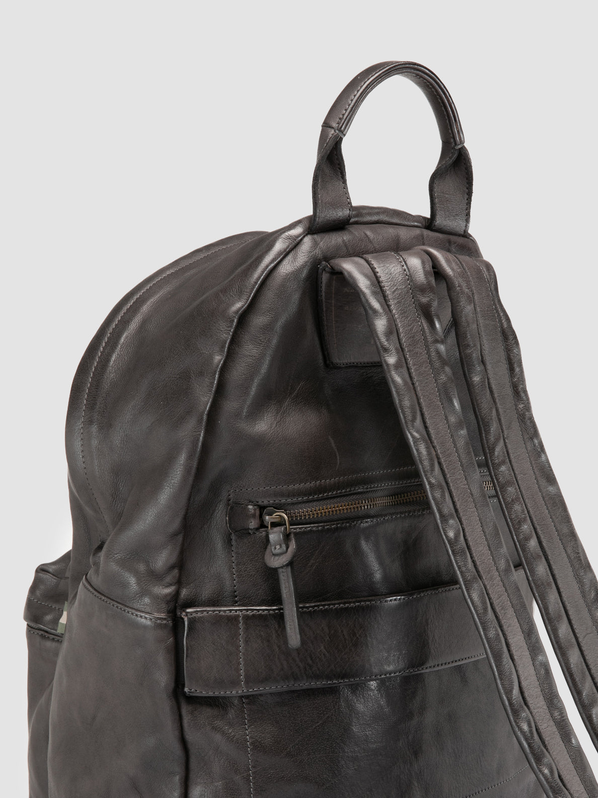 The OC Pack backpack is a testament to Italian craftsmanship. Made from premium dark grey leather to accommodate a dynamic lifestyle, it offers ample space within a main compartment secured with a two-way zip. Equipped with a top handle and adjustable shoulder straps, it offers additional storage thanks to a sleek, flat zip pocket on the back.