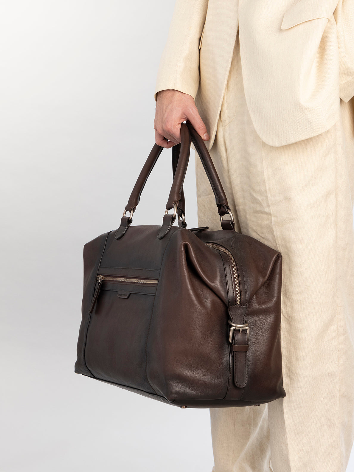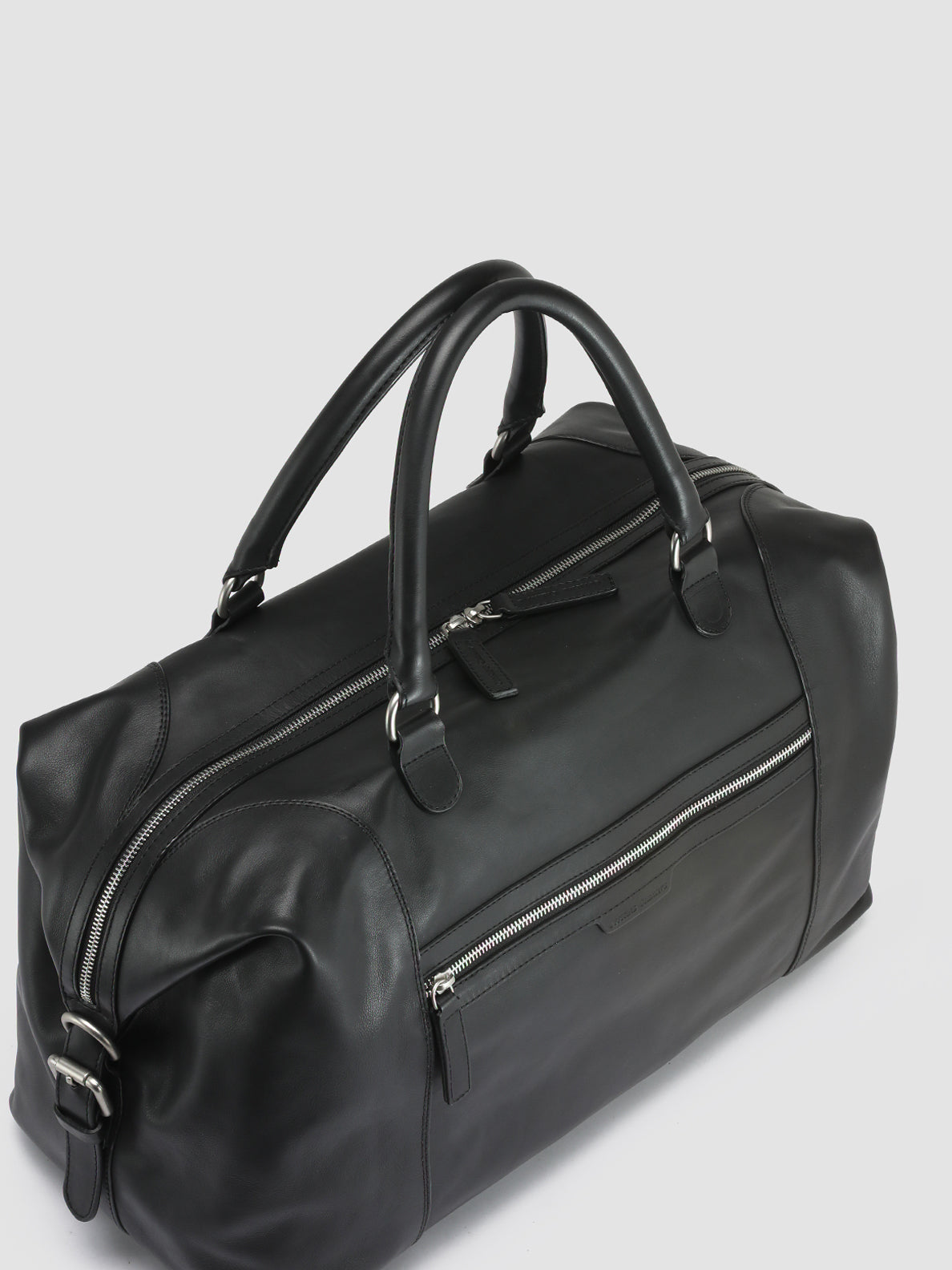Der Weekender „Jules 002“ ist eine raffinierte und zugleich praktische Wahl für moderne Reisende. Die geräumige Tasche wird in Italien von Hand aus schwarzem Leder gefertigt und verströmt Luxus und Langlebigkeit. Sie hat zwei Henkel sowie einen abnehmbaren Schulterriemen. Das große Hauptfach wird mit einem Reißverschluss geschlossen, und in den Seitentaschen finden alle wichtigen Dinge ihren Platz.