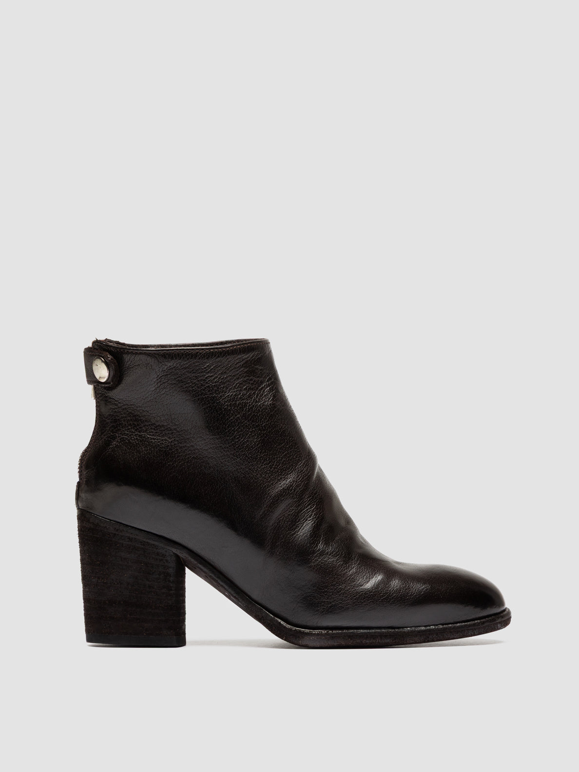 Handcrafted from brown leather, the Delice 001 booties feature a clean upper balanced by a solid block heel. The exposed back zip adds both character and ease, while the leather sole with rubber insert ensures stability.
