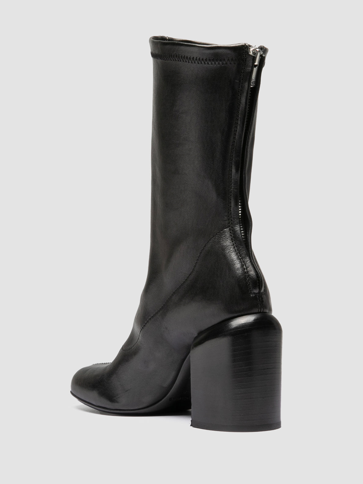 Handcrafted in Italy from soft black leather, the Esther 003 boots stand out for the sculpted silhouette. The high shaft, central seam and back zip create a close, elongated fit, while the inverted heel ensures effortless style.