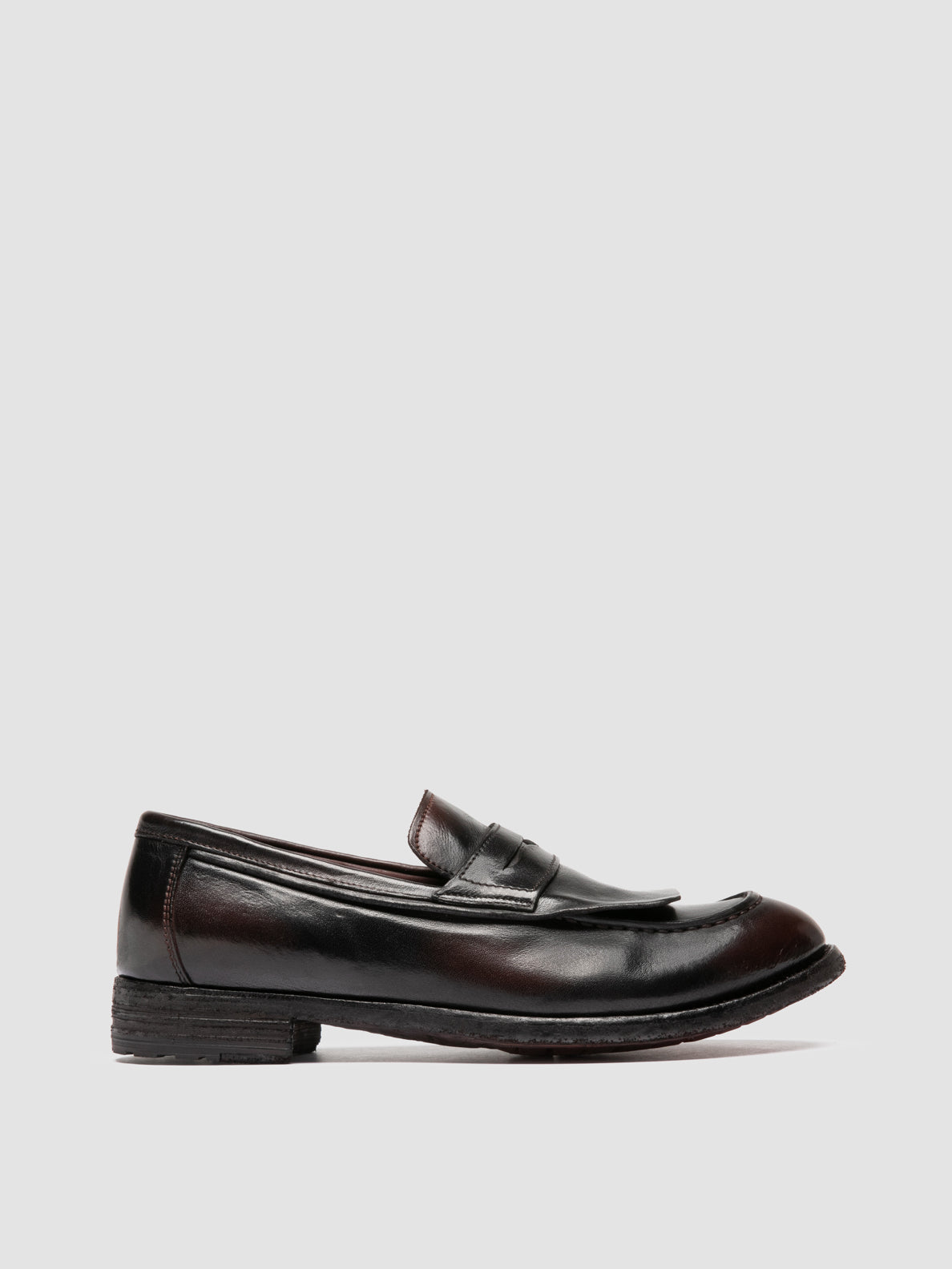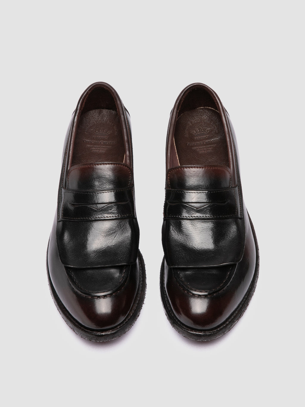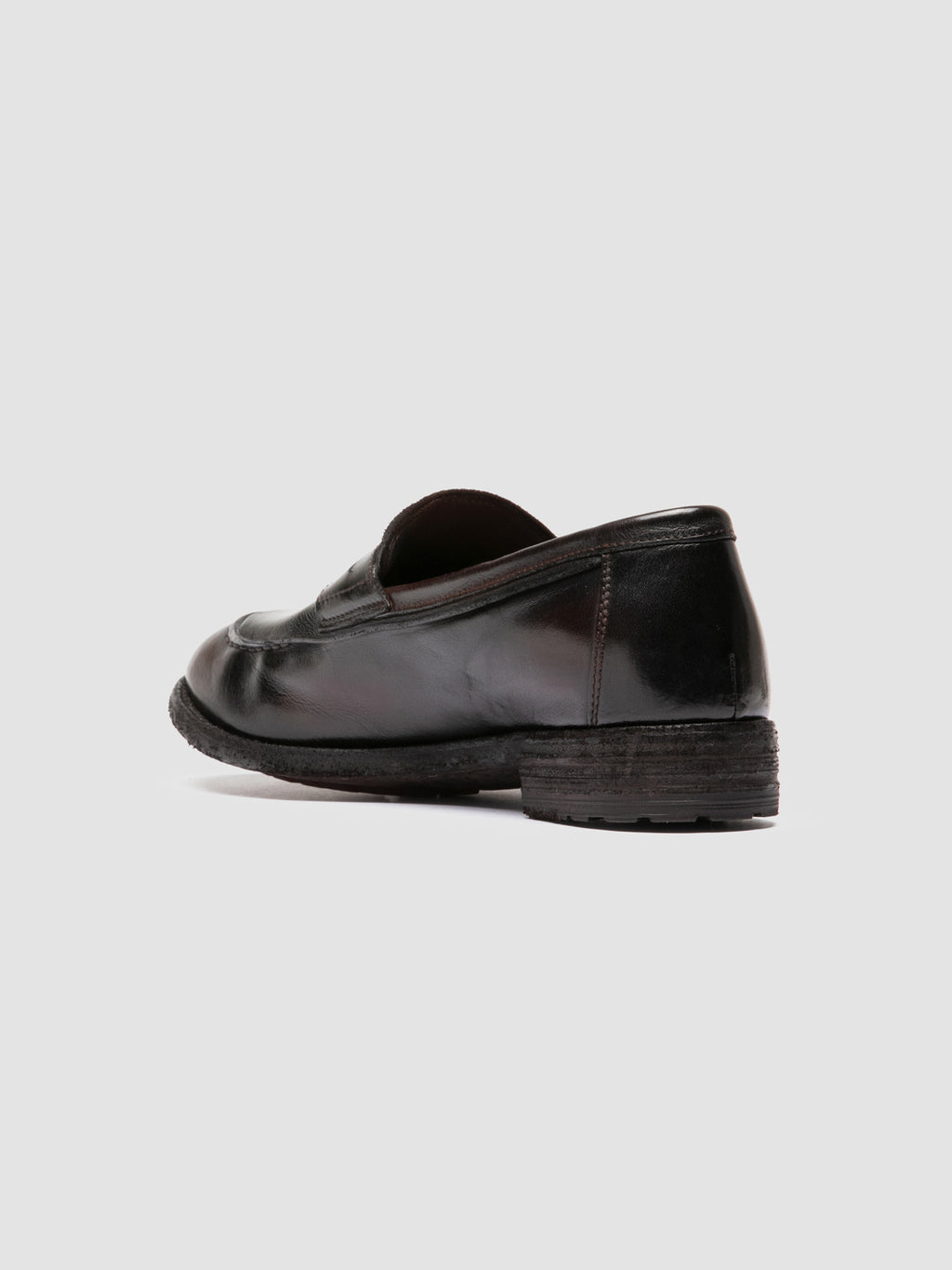 Die Slipper „Lexikon 158“ verbinden elegantes Design mit alltäglicher Funktionalität. Sie werden in Italien aus braunem Airbrush-Leder handgefertigt und zeichnen sich durch einen farblich abgestimmten Riemen und eine Sohle mit Gummieinsätzen für besseren Halt aus.