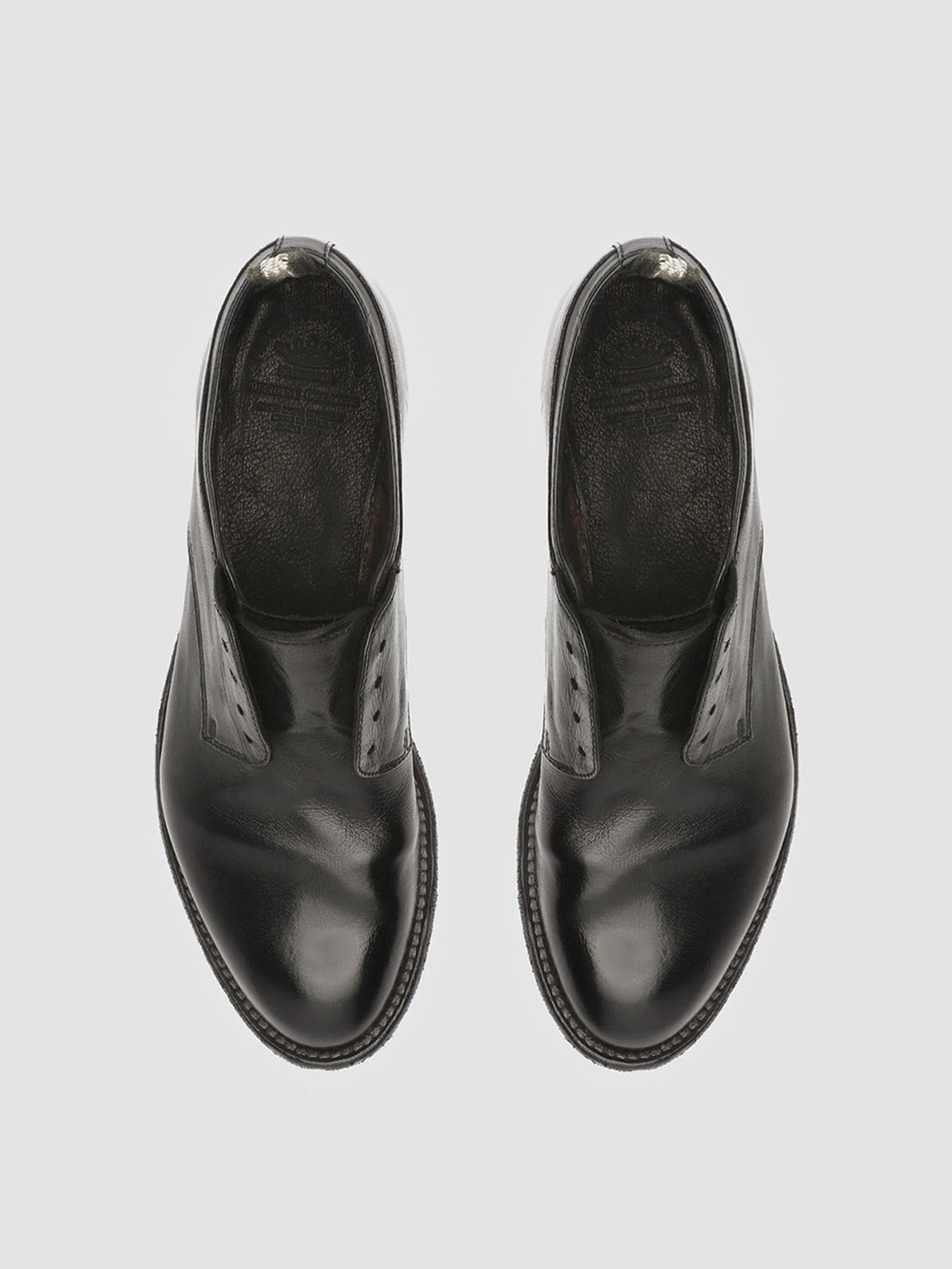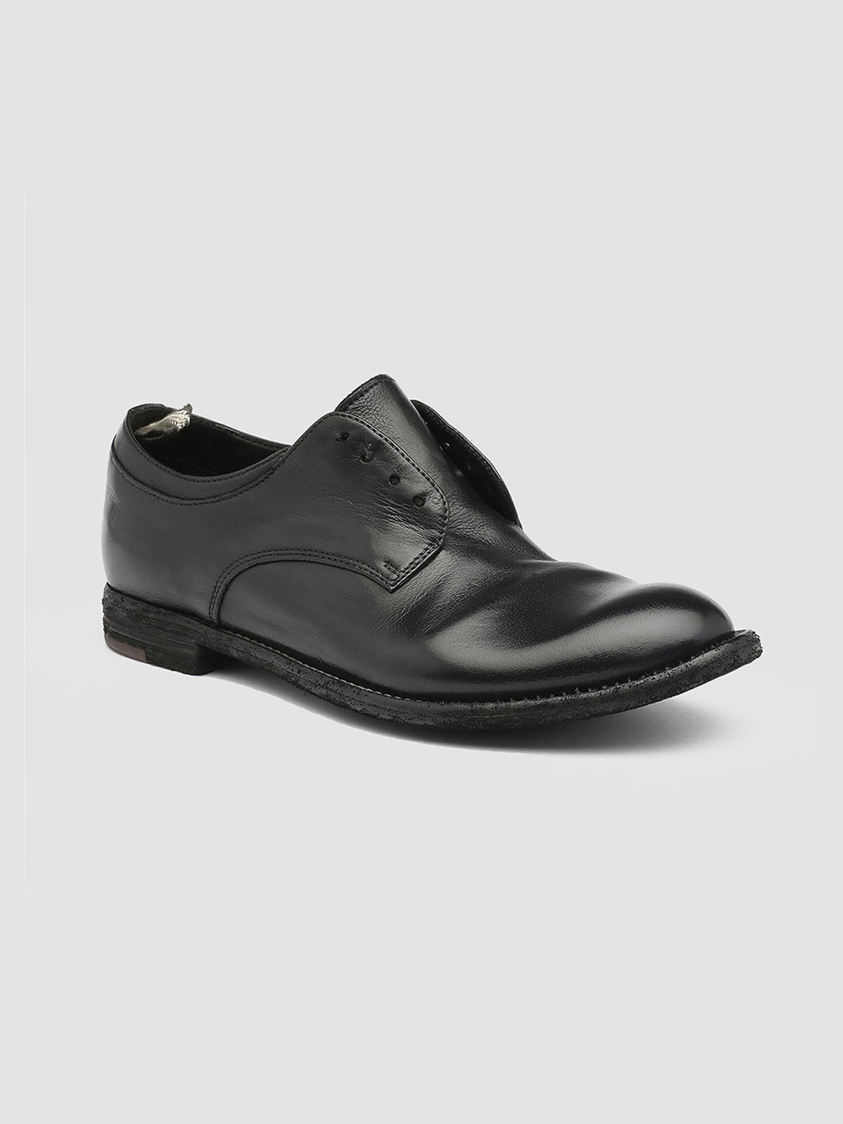 Unsere exklusiven Derby-Schuhe „Lexikon“ sind handgefertigt und aus hochwertigem Leder gefertigt. Sie zeichnen sich durch ihr ungefüttertes, schnürloses Design, ihre abgerundete, mandelförmige Spitze, ihre charakteristische Fersenschlaufe aus Ripsband und ihre Ledersohle mit niedrigem Absatz aus.