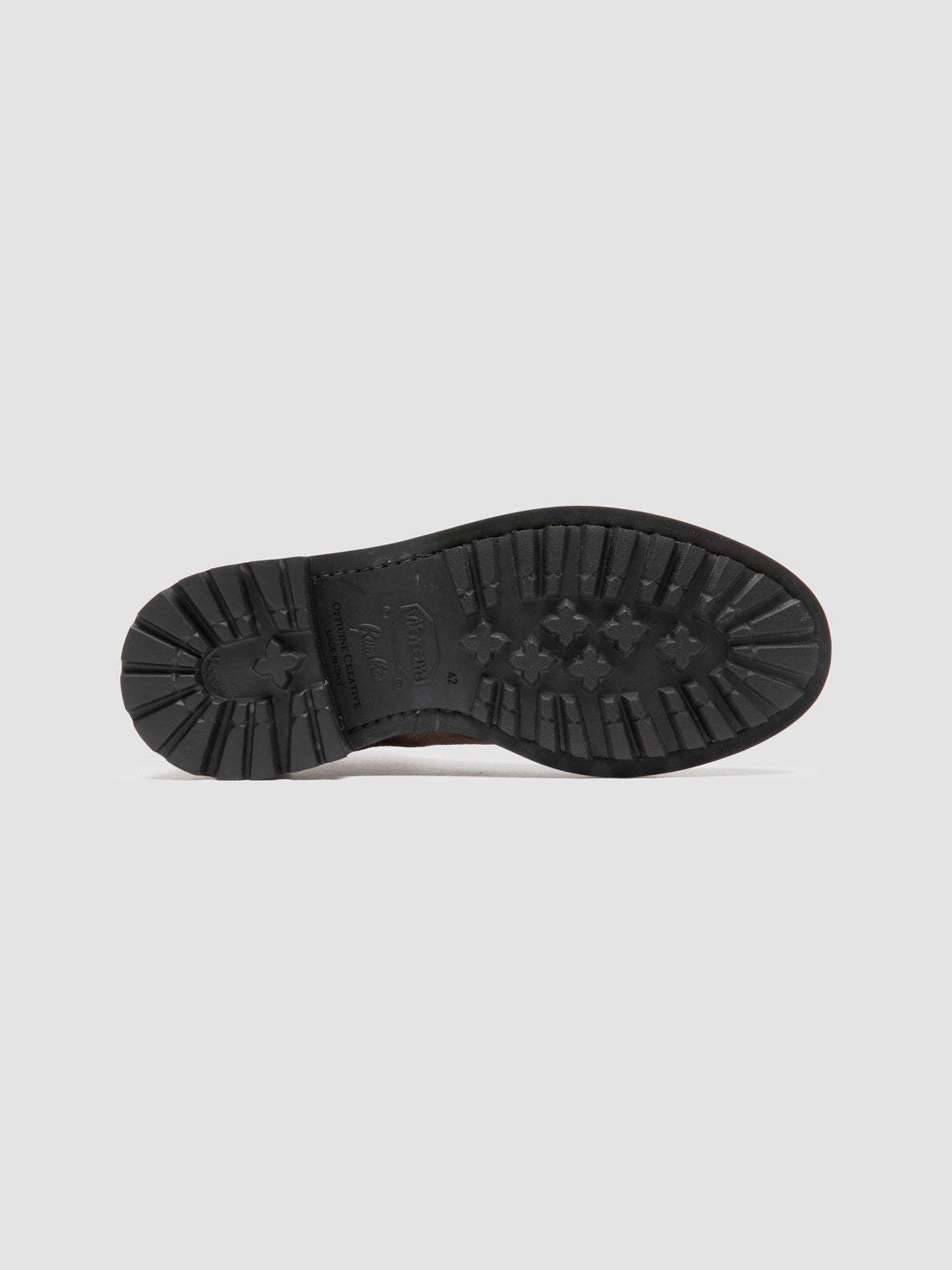 The Bristol 008 boots rework the timeless Chelsea silhouette with full brogue detailing and a brown suede upper. The stretch side panels and rear pull tab ensure ease, while the chunky lug sole adds grip and character.