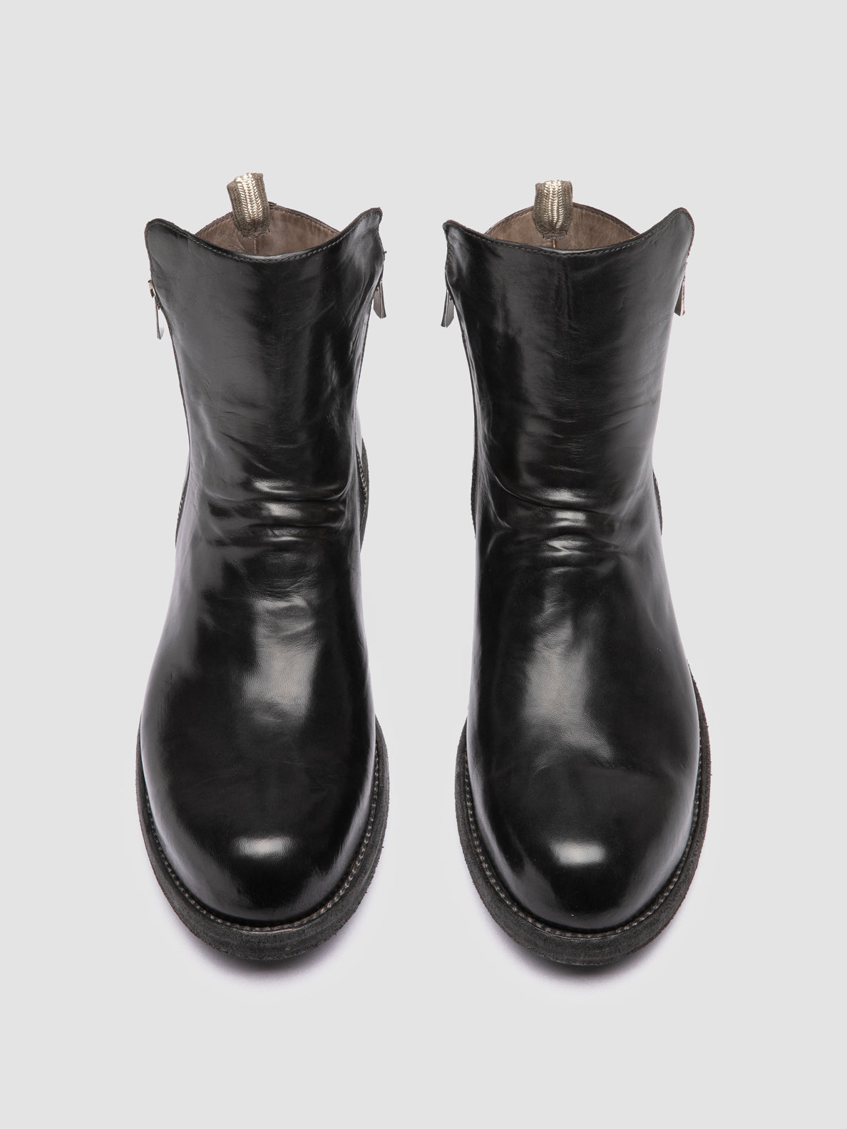 Die Stiefel „Bulla DD 105“ werden in Italien aus schwarzem, poliertem Leder handgefertigt und mit einer Tiefenfärbung veredelt. Die minimalistische Silhouette wird durch einen eleganten seitlichen Reißverschluss akzentuiert, während die gummierte Sohle für Trittsicherheit und Komfort sorgt.