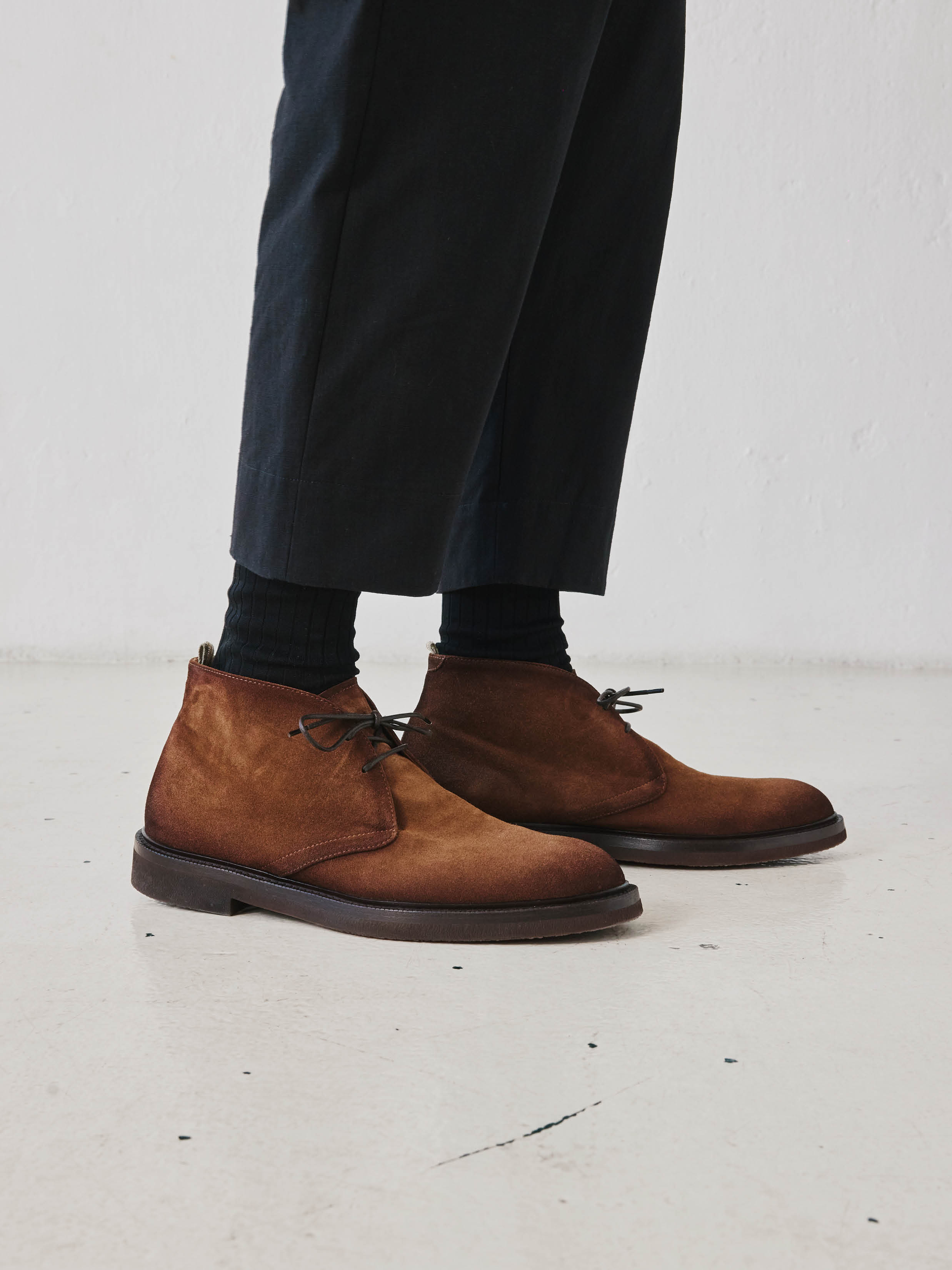 Die Wildlederstiefel „Dude Flexi 004“ von Officine Creative sind ein echter Dauerbrenner im Schuhschrank. Ihr sattes Schokoladenbraun passt zu den meisten Farben, während die charakteristische Bologna-Konstruktion und die Gummisohle sie bequem genug machen, um sie den ganzen Tag zu tragen.