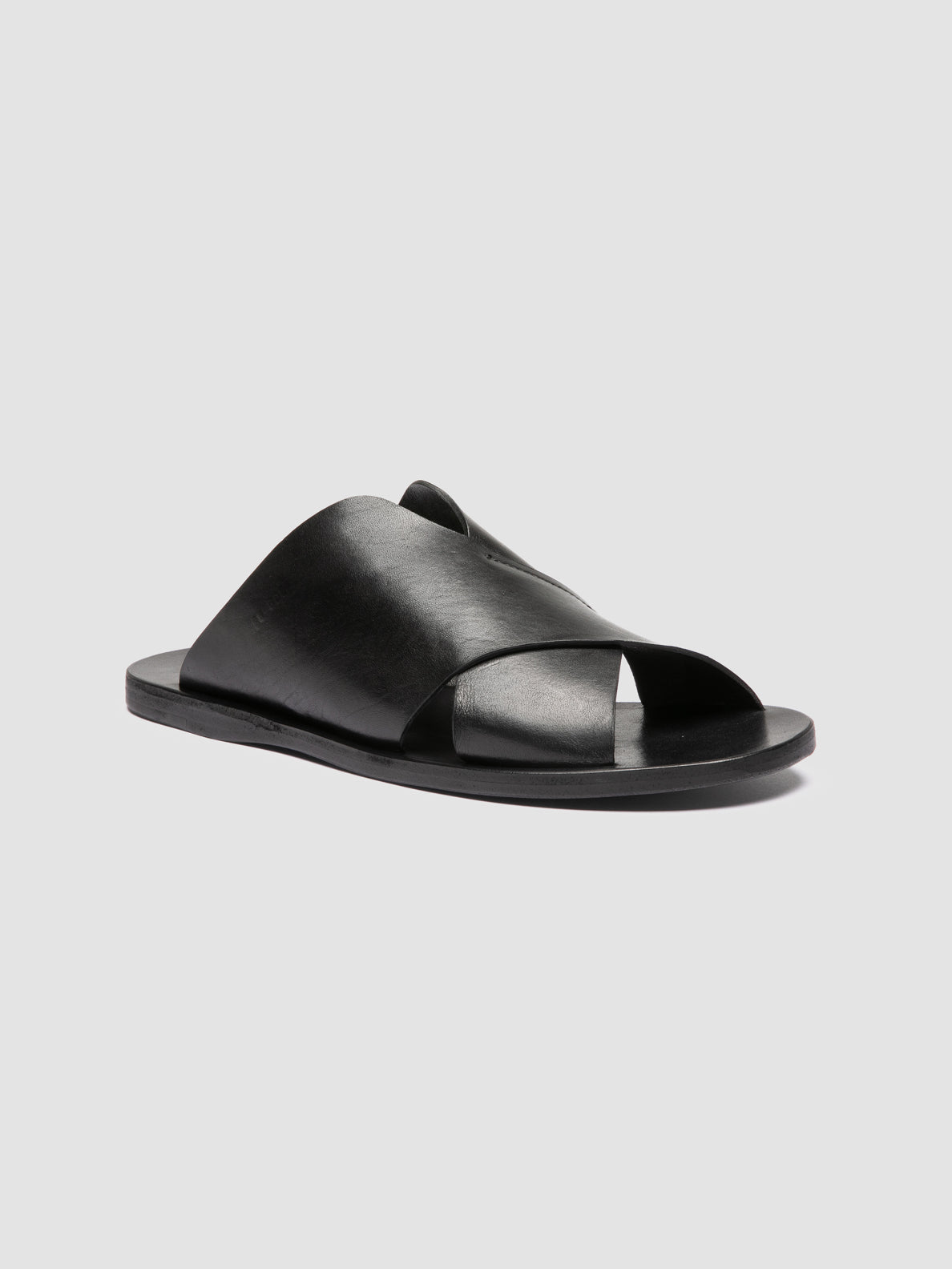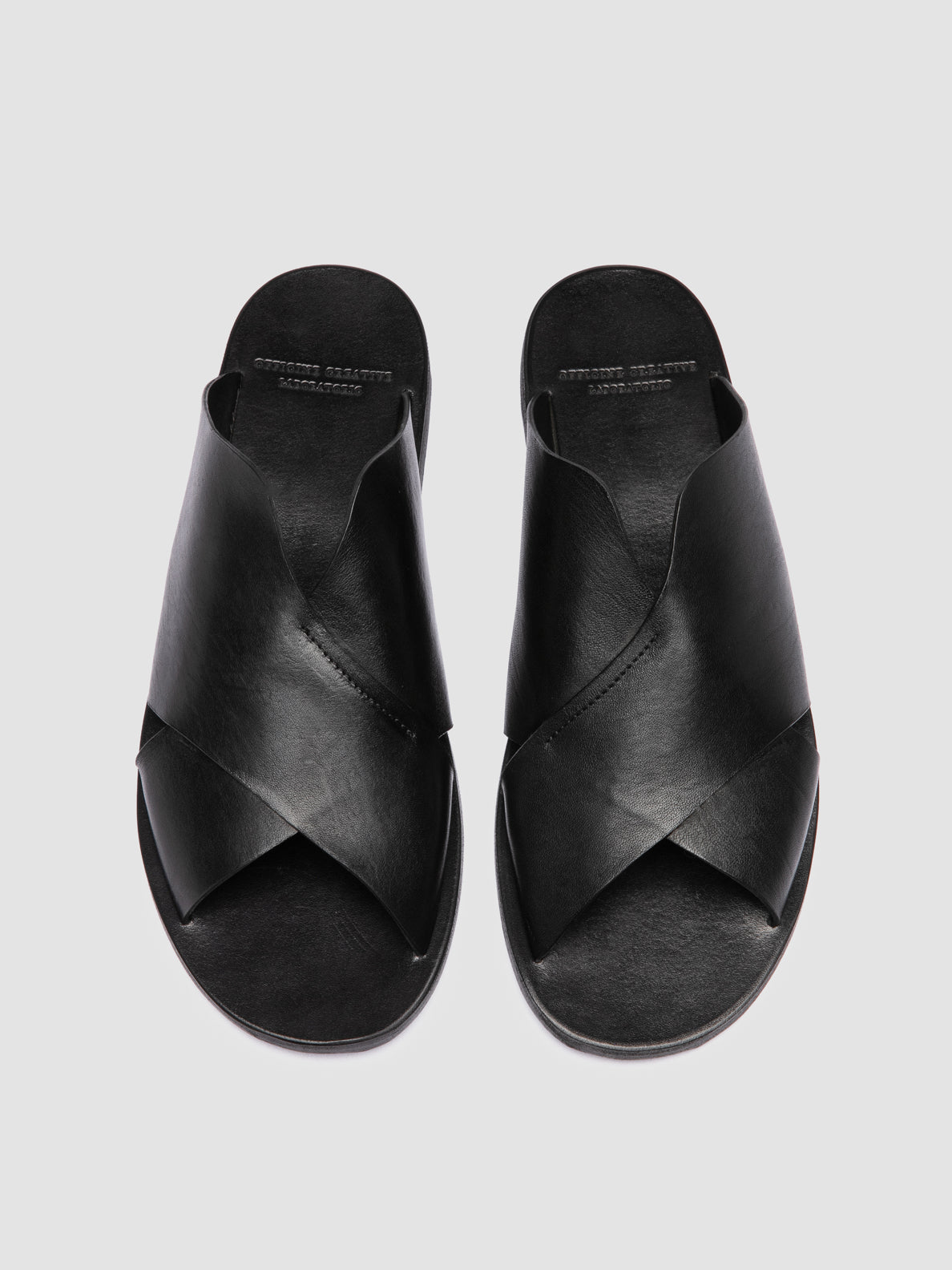 Entirely hand-made from a single piece of black leather, the Kimolos 015 feature a seamless upper that folds across the foot in a bold, clean silhouette. A minimal slip-on design that offers natural flexibility and ease.