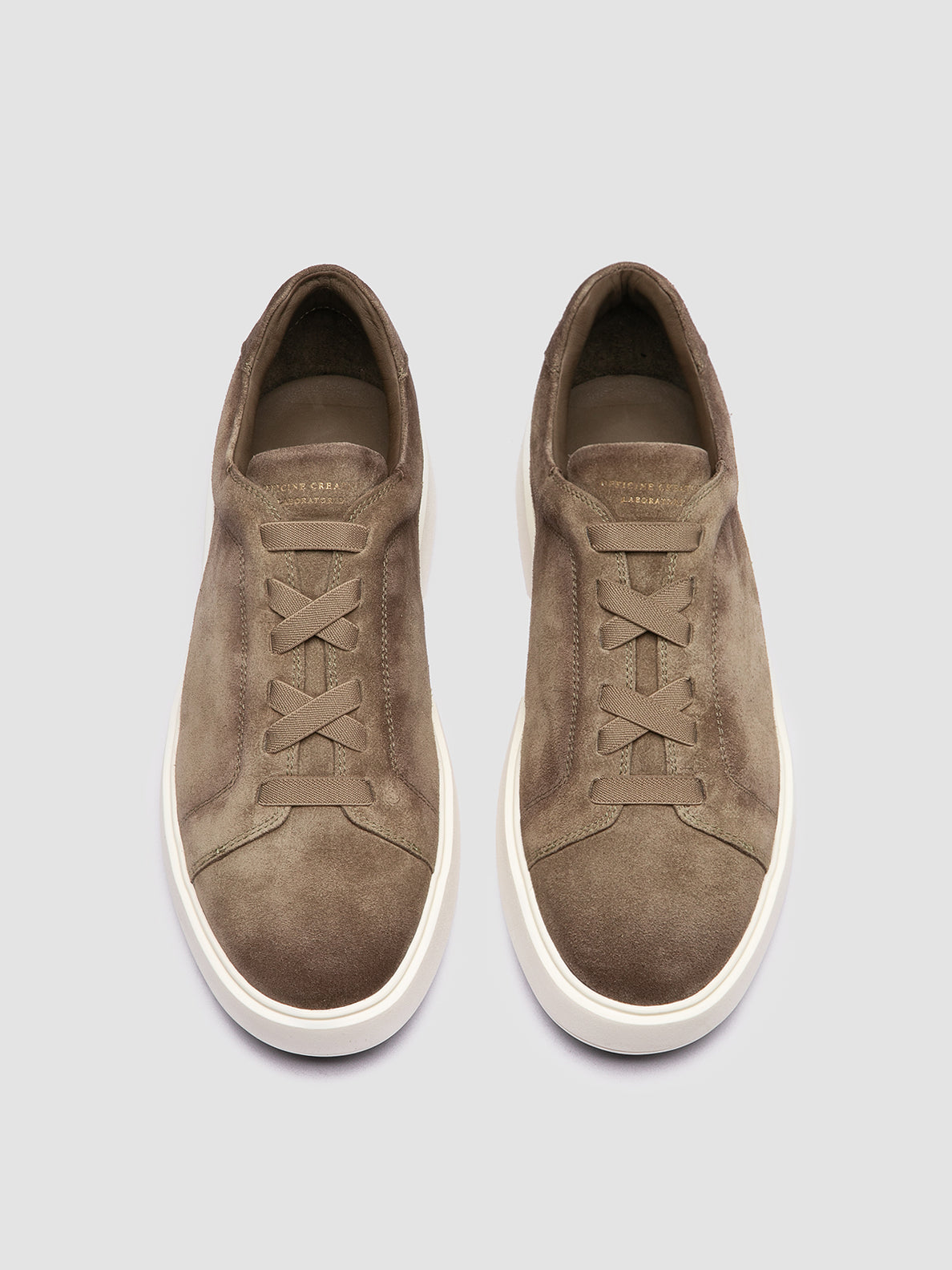 Handmade in Italy, the Slouch 001 sneakers embody minimal elegance with a sleek design in taupe airbrushed suede. Anchored by a lightweight EVA sole, they offer an understated yet sophisticated profile for refined casual wear.