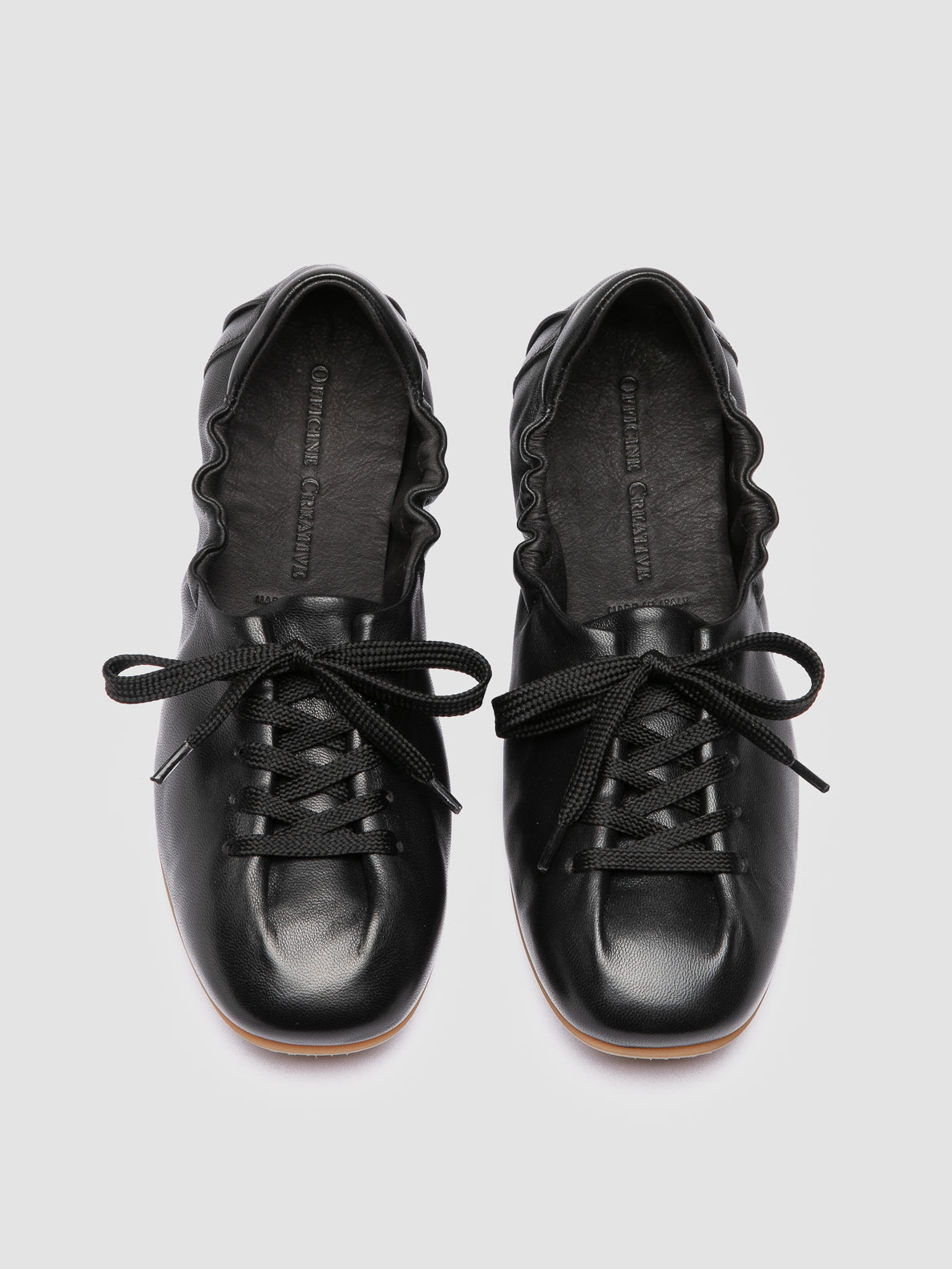 Inspired by the flexibility of a ballerina, the Ballet 101 sneakers are handcrafted from supple black leather and feature a gathered upper with lace-up closure that wraps around the foot and a lightweight rubber sole for stylish everyday wear.