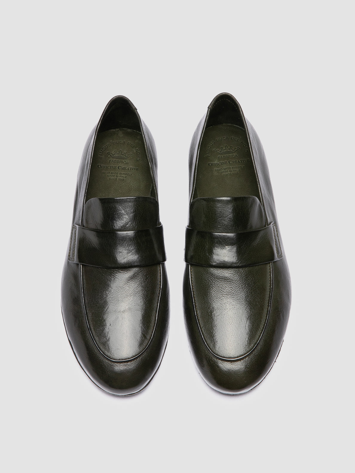 Die Blair DD 001 Loafer werden in Italien akribisch in Handarbeit aus weichem dunkelgrünem Leder gefertigt. Das klassische Design mit einem eleganten Vorderriemen wird durch eine tiefe Farbbehandlung und eine flache Sohle mit einem flachen Absatz ergänzt.