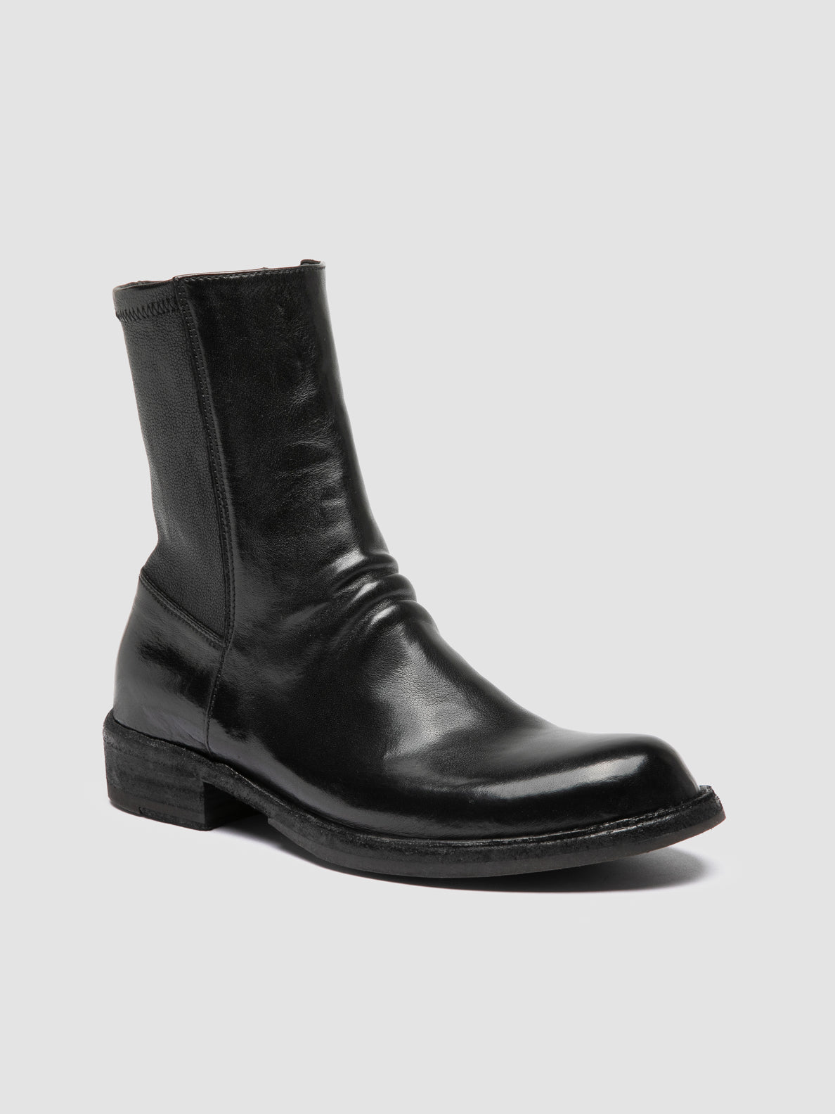 The Legrand 171 boots feature a sleek, minimal design in black leather. A discreet back zip ensures easy wear, while the stacked leather heel and sole, complete with poetic engravings, reflect expert craftsmanship.
