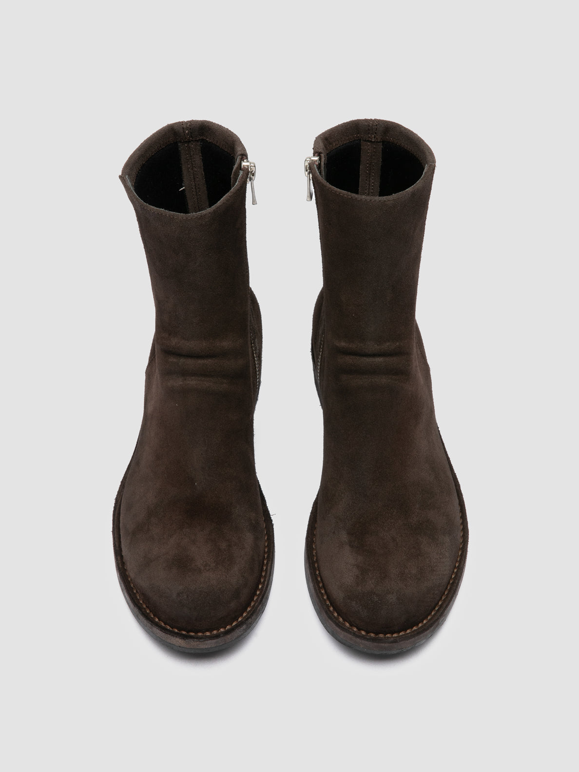 The Legrand 171 boots feature a sleek, minimal design in brown suede. A discreet back zip ensures easy wear, while the stacked leather heel and sole, complete with poetic engravings, reflect expert craftsmanship.