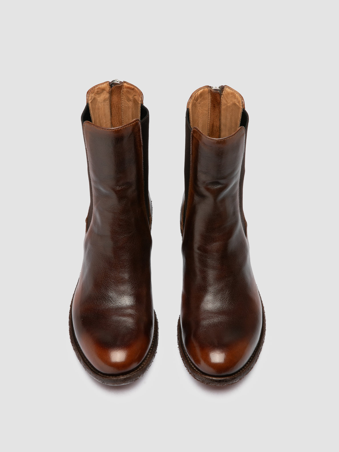Our Lison 017 Chelsea boots are as classic as they come. A timeless addition to any wardrobe, they are crafted from brushed brown leather and piece-dyed to achieve a worn-in look. The front zipper ensures easy wearability.