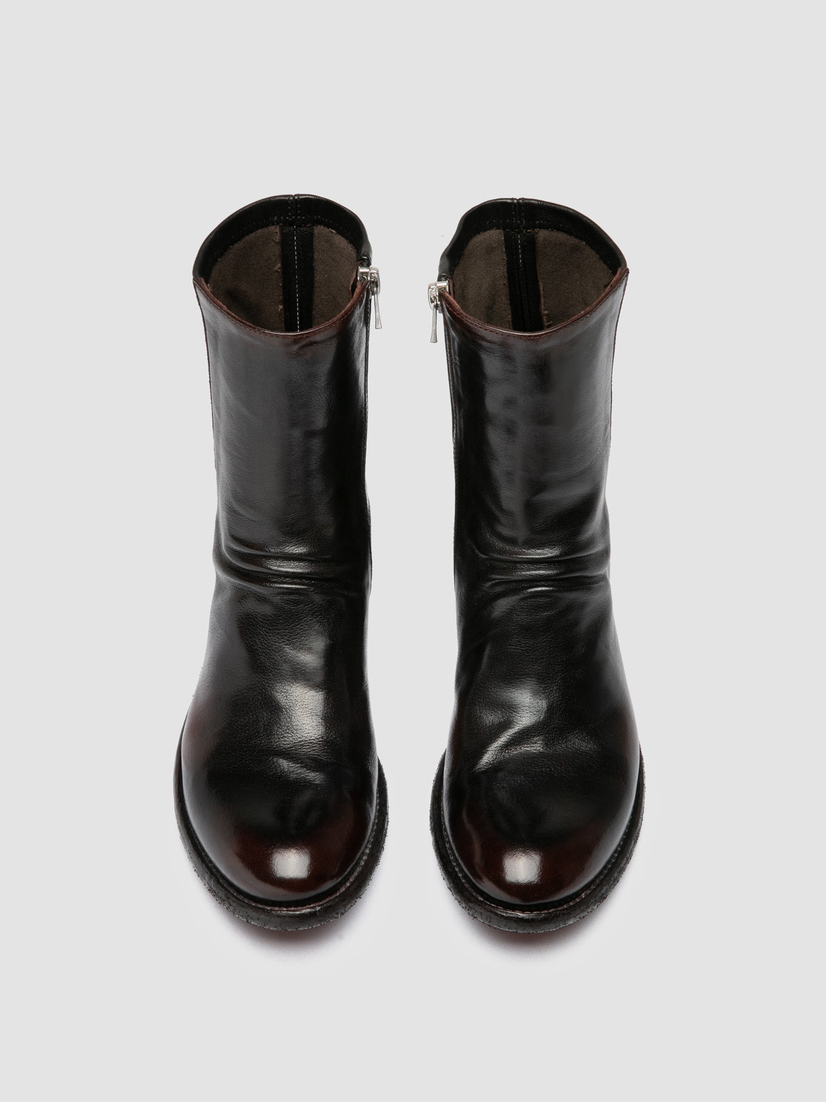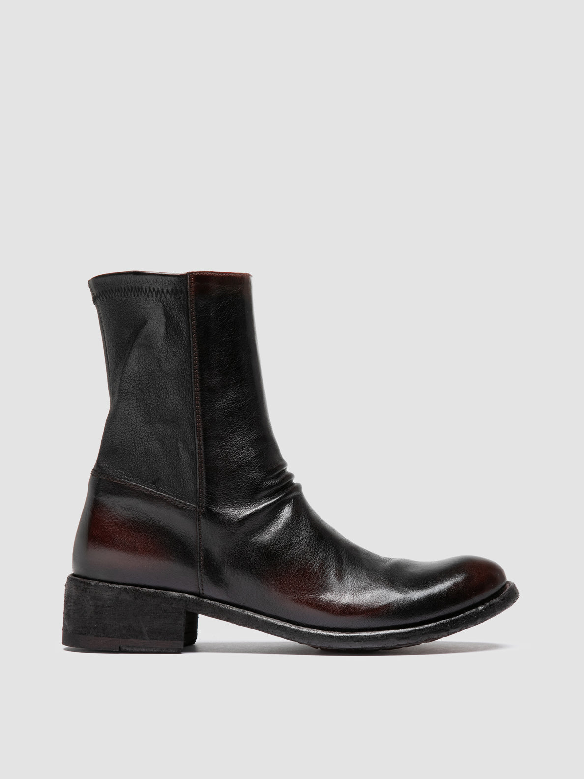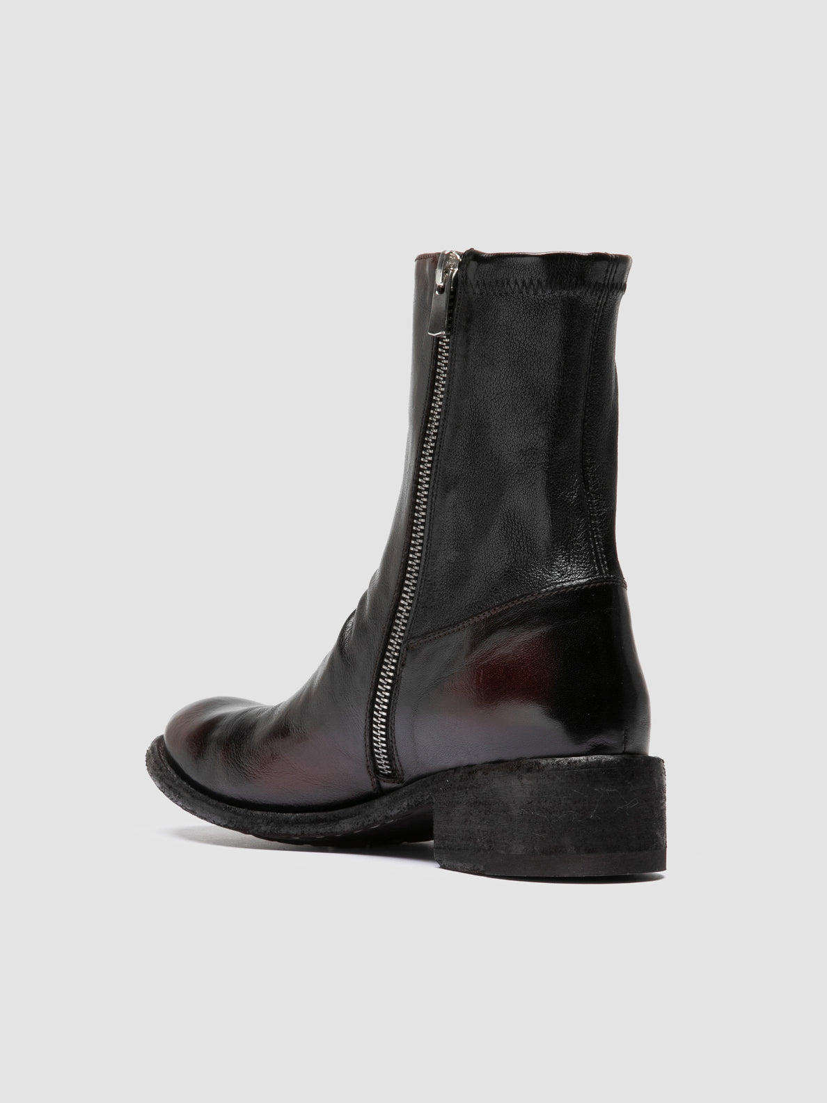 Our versatile Lison ankle boots in premium leather are marked by a decidedly comfortable silhouette thanks to the stretch leather back panel. They show an airbrushed finish in shades of coffee and black a rounded toe soft front pleats side zip fastening and a leather sole with a stacked heel and commando rubber pads.