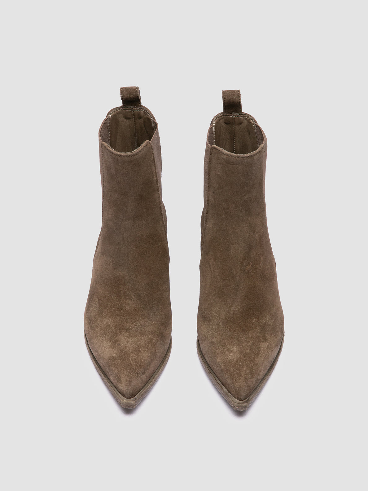 The Noelie DD 101 Chelsea boots merge timeless craftsmanship with modern appeal. Handcrafted in Italy from deep-dyed green suede, they feature an accentuated pointed toe, elastic side inserts, a slanted heel and rubber-injected sole.