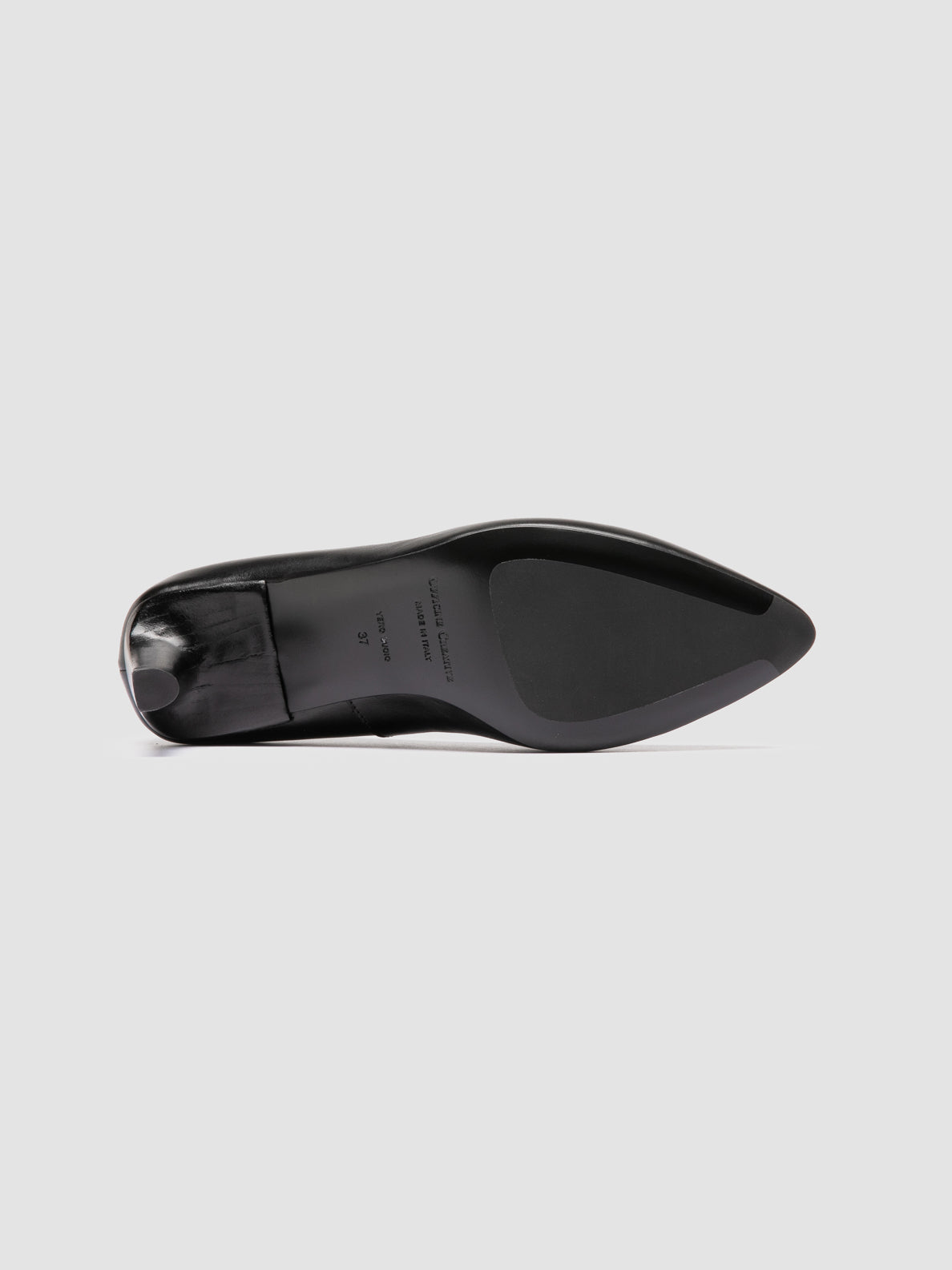Handcrafted from a single piece of soft black leather, the Suzy 001 Mary Jane feature a sleek, refined silhouette. The leather-covered heel offers an elegant lift, while the rubber-insert sole ensures comfort.