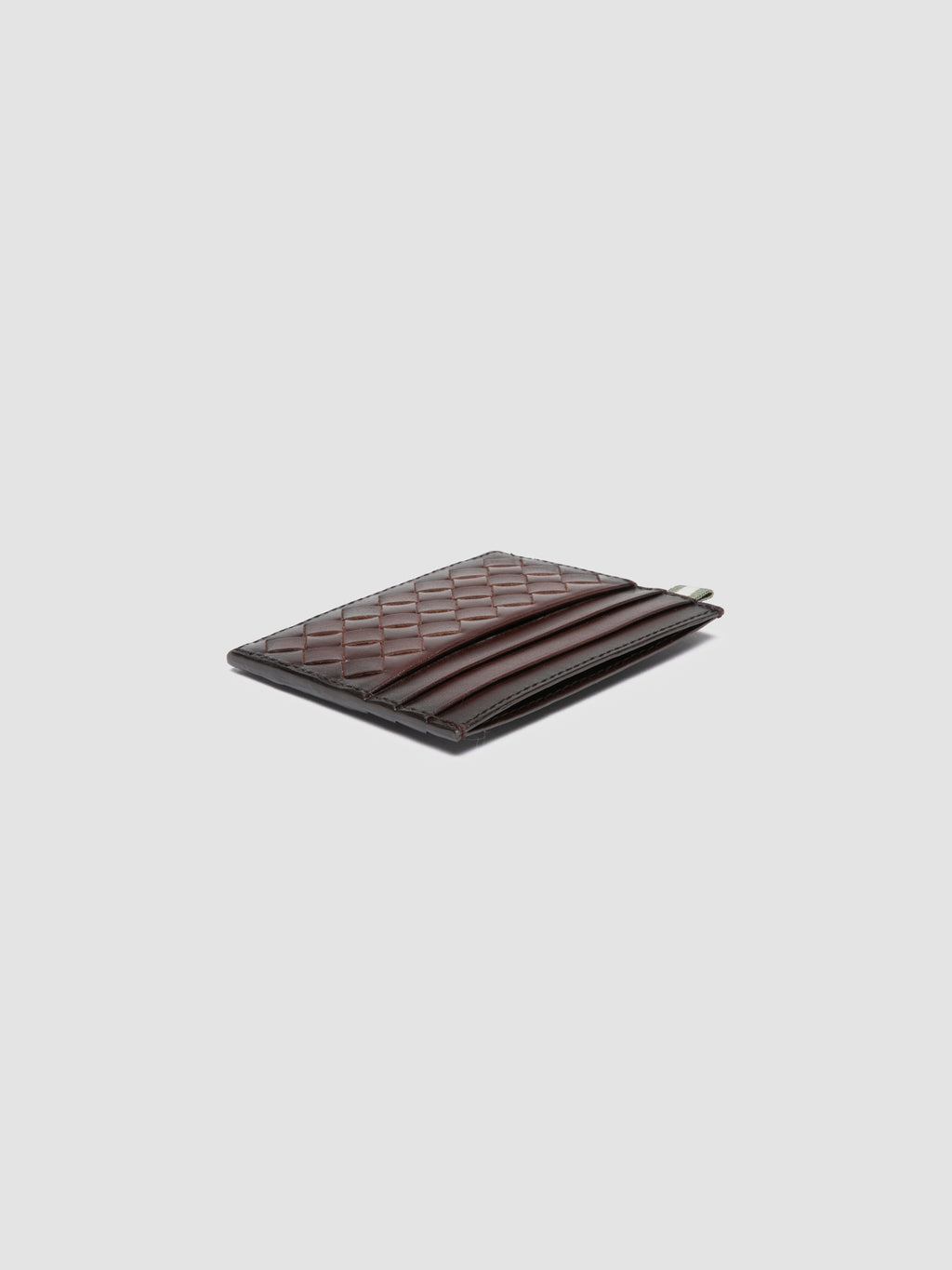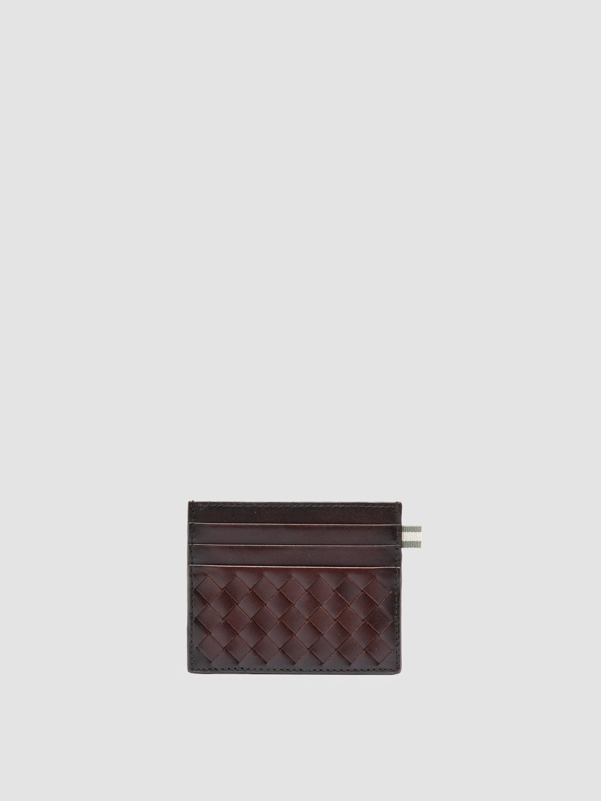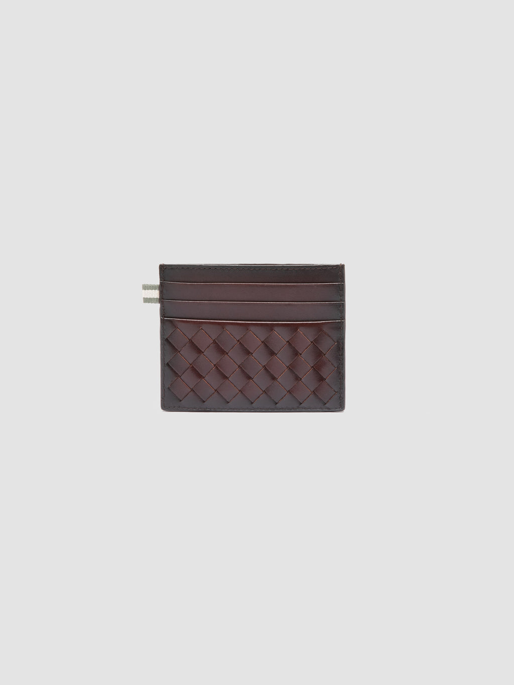 Our Boudin card holder stand out thanks to the refined woven leather motif on both sides and the airbrushed finish in shades of dark brown. Expertly handcrafted it features six card slots a central flat pocket and our signature grosgrain loop tab at the side.
