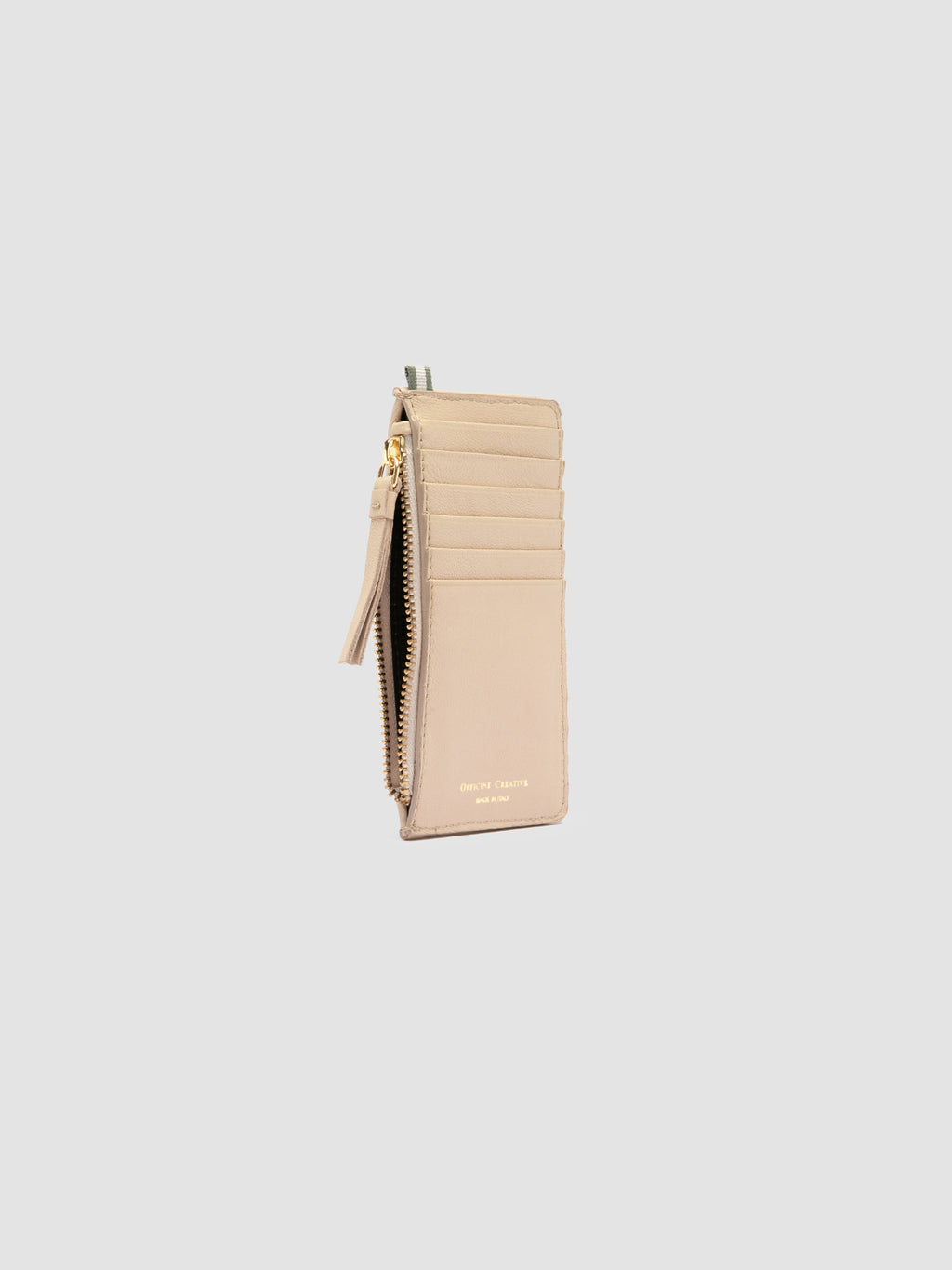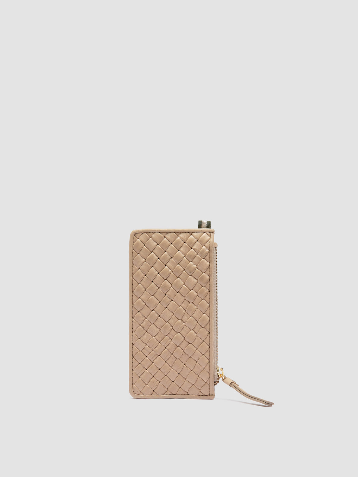 Made entirely by hand by our skilled craftsmen our Juliet card holder stands out thanks to its woven design in fine beige leather. It features a gold-tone metal zip-fastened compartment six card slots logo lettering printed at front and our signature grosgrain loop tab at the side.