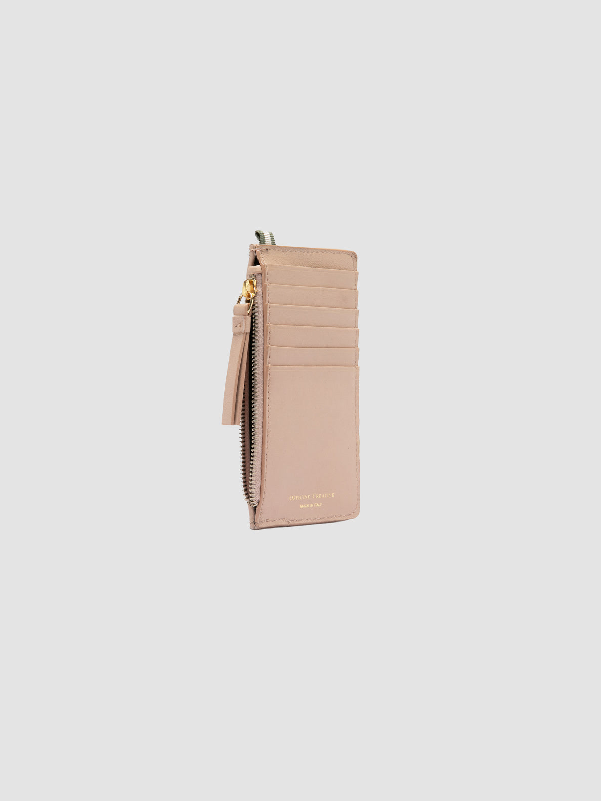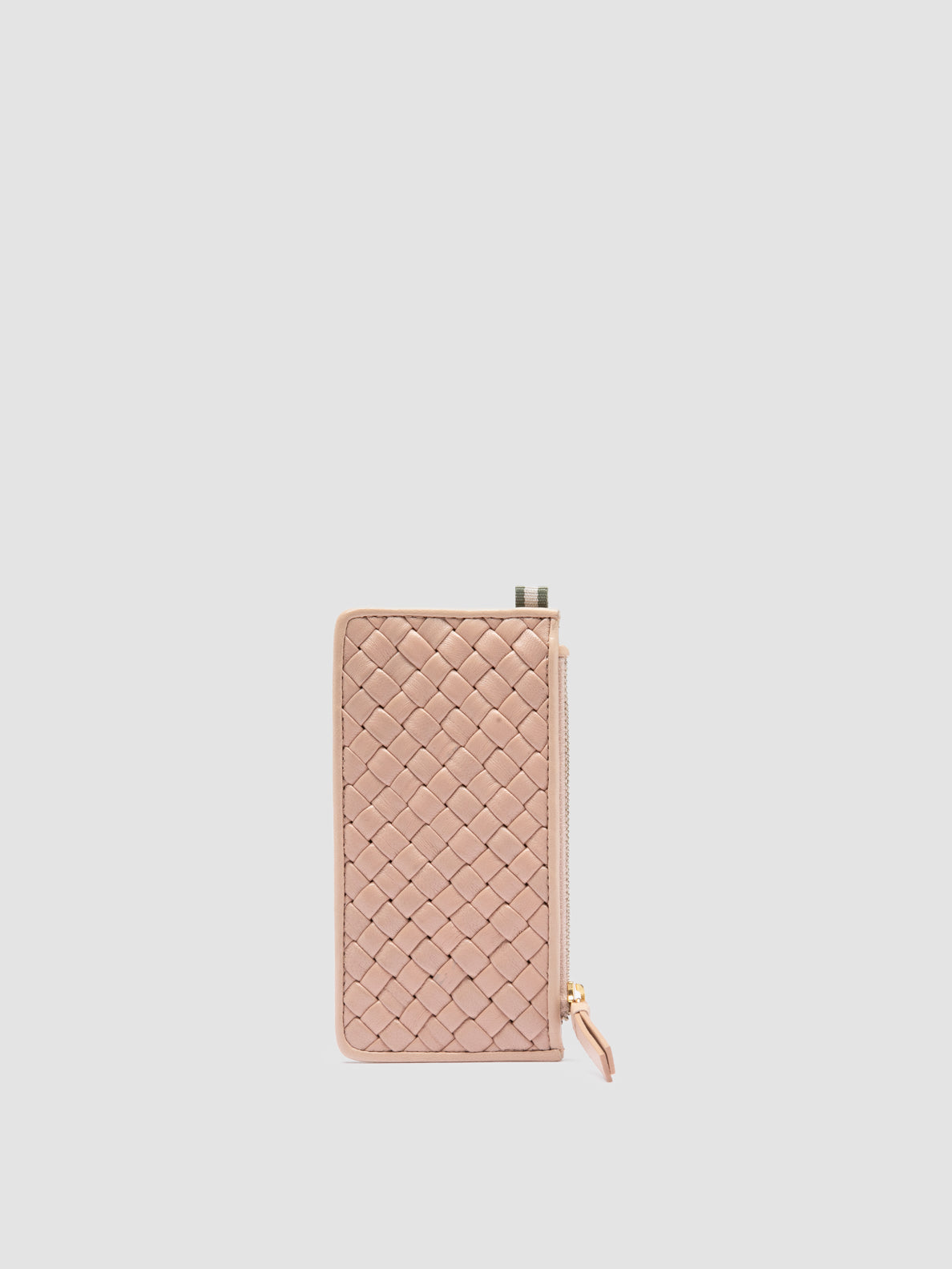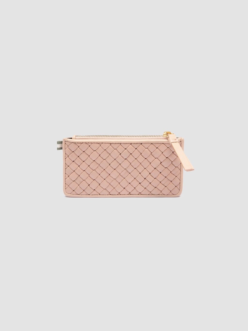 Made entirely by hand by our skilled craftsmen our Juliet card holder stands out thanks to its woven design in fine rose leather. It features a gold-tone metal zip-fastened compartment six card slots logo lettering printed at front and our signature grosgrain loop tab at the side.