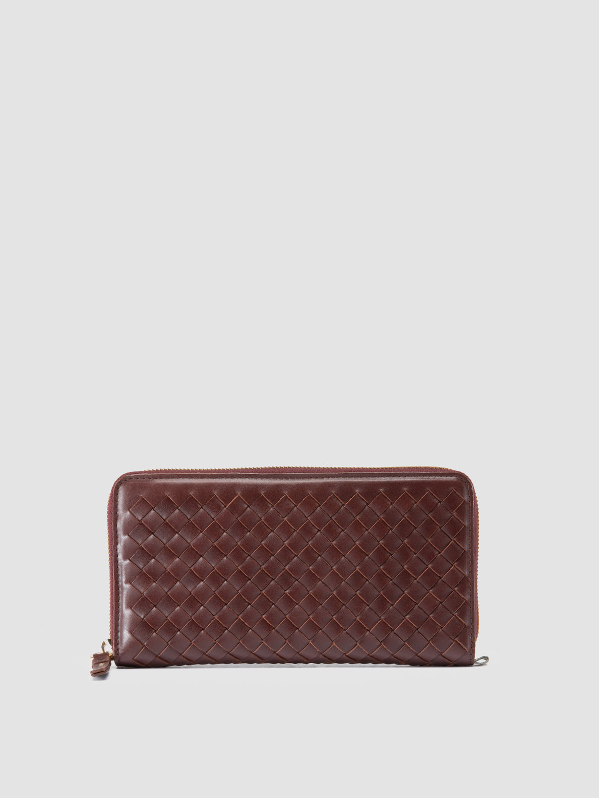 With a handwoven brown leather design, the Juliet 201 wallet features a zip-around closure, multiple card slots, an open compartment and a central zipped pocket for effortless organisation. The gold-tone logo adds a distinctive finish.