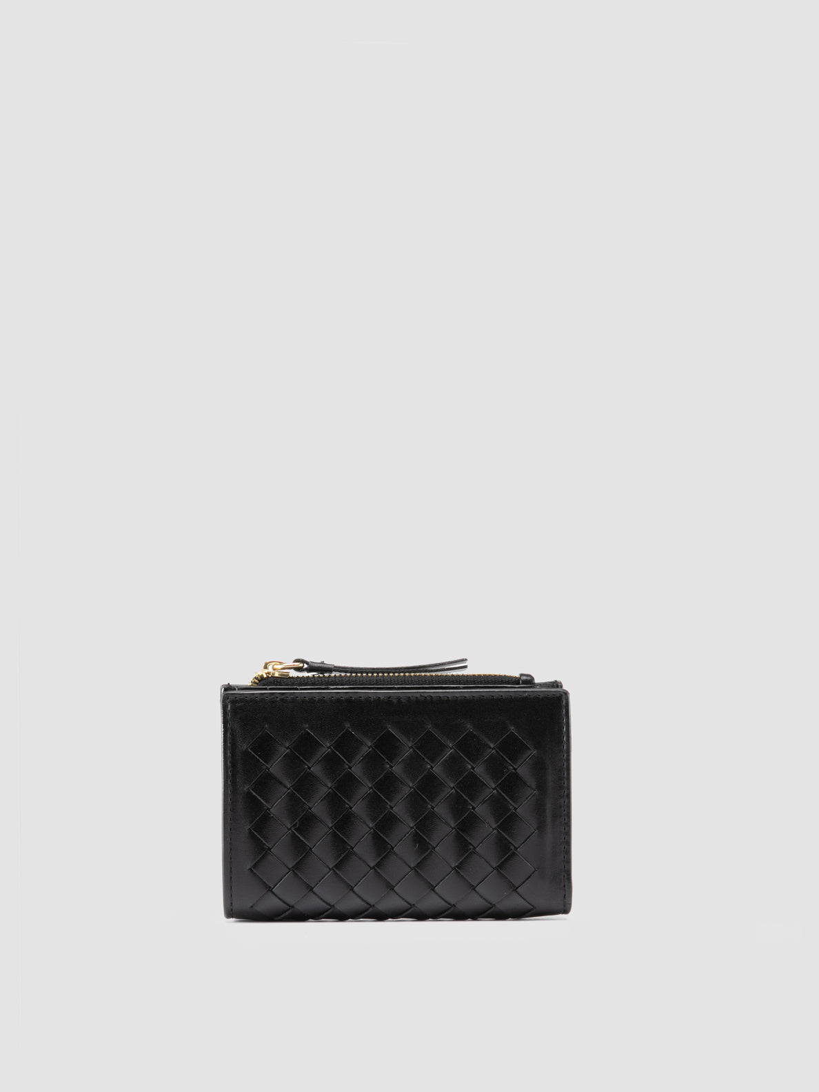 Crafted from handwoven black leather, the Juliet 204 wallet features a snap button closure, multiple card slots, a zipped compartment and an interior slip pocket for effortless organisation. Finished with discreet gold-tone lettering.
