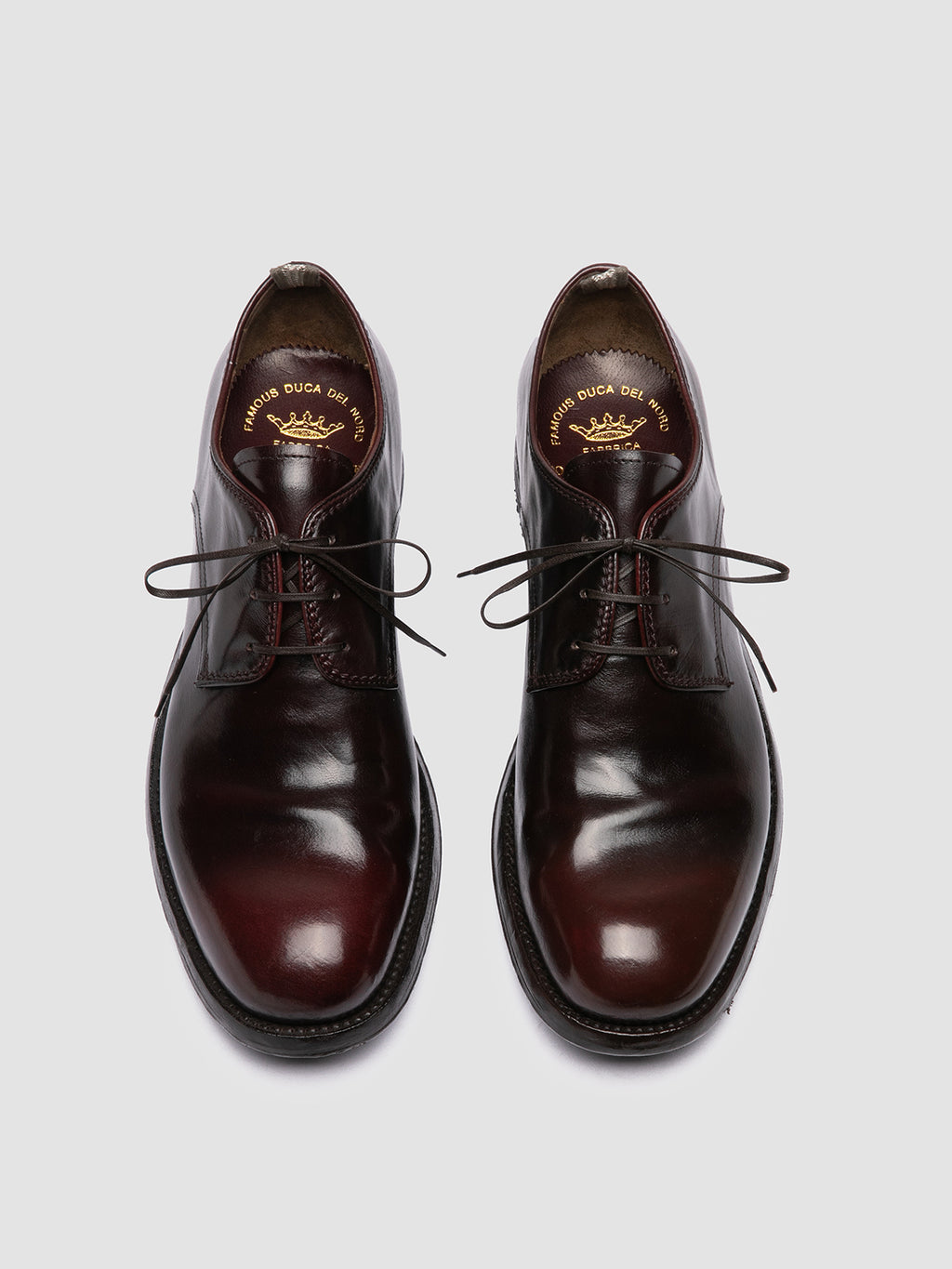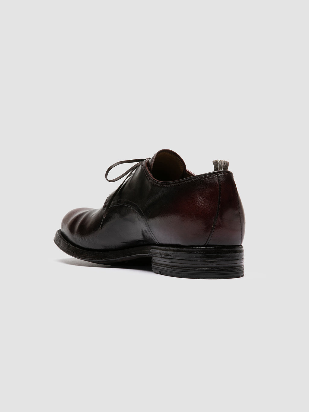 Handmade in Italy from premium leather, the Balance 019 derby shoes in burgundy feature a lace-up design with an airbrushed finish and a rubber-injected leather sole, blending durability with a refined aesthetic.