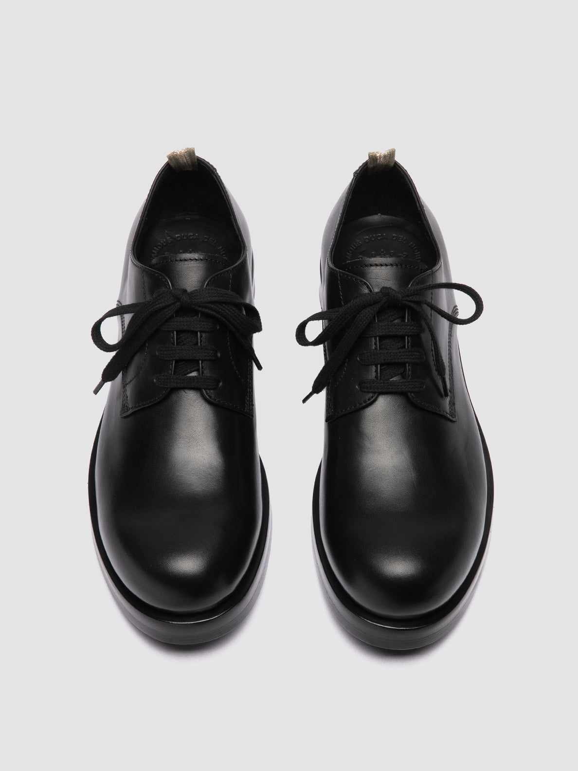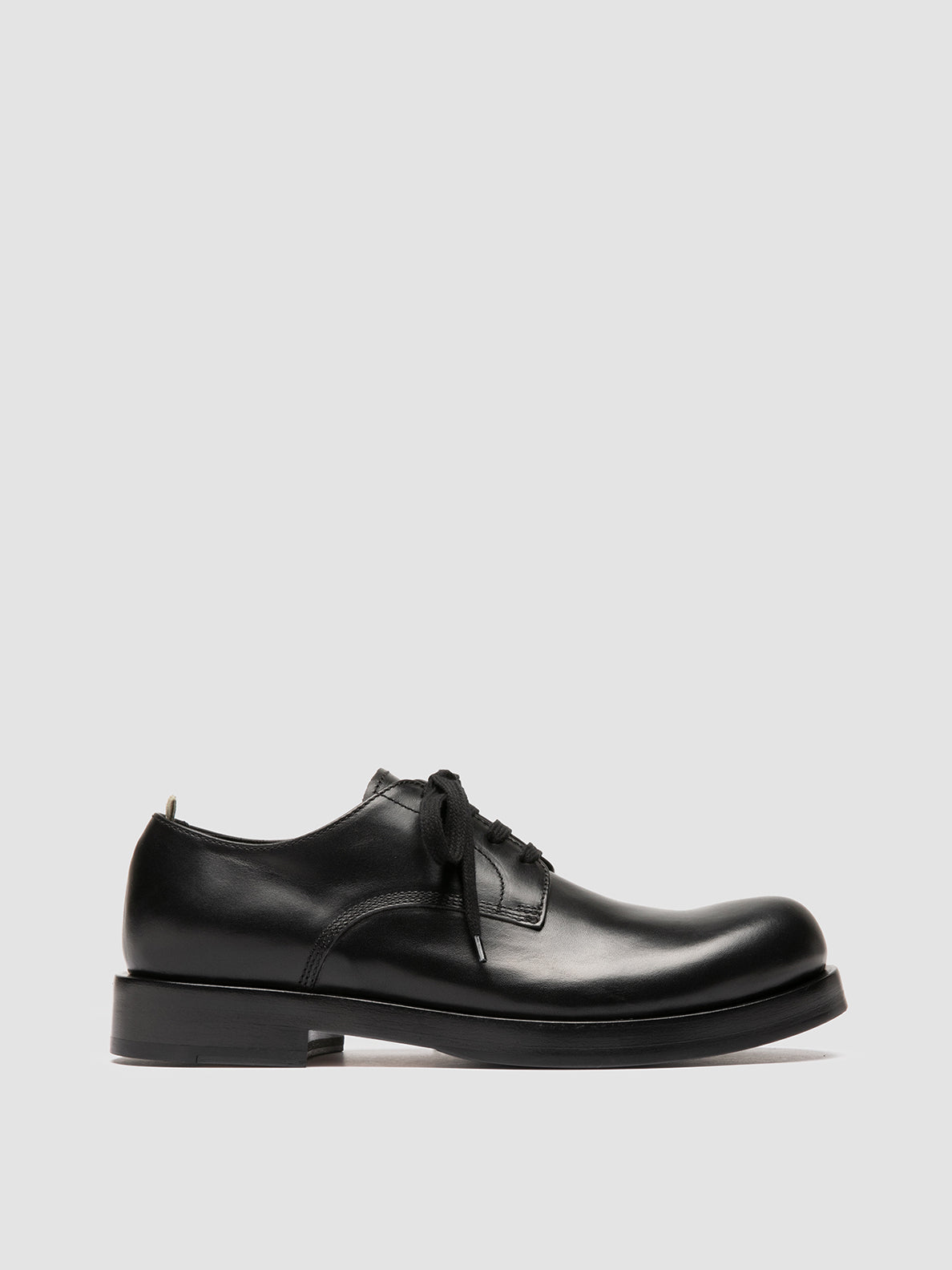 Emanating a contemporary yet gothic charm, the Bulla 001 derby shoes are expertly handcrafted in Italy from premium black leather, featuring a durable rubber-injected sole for enduring elegance and robust functionality.