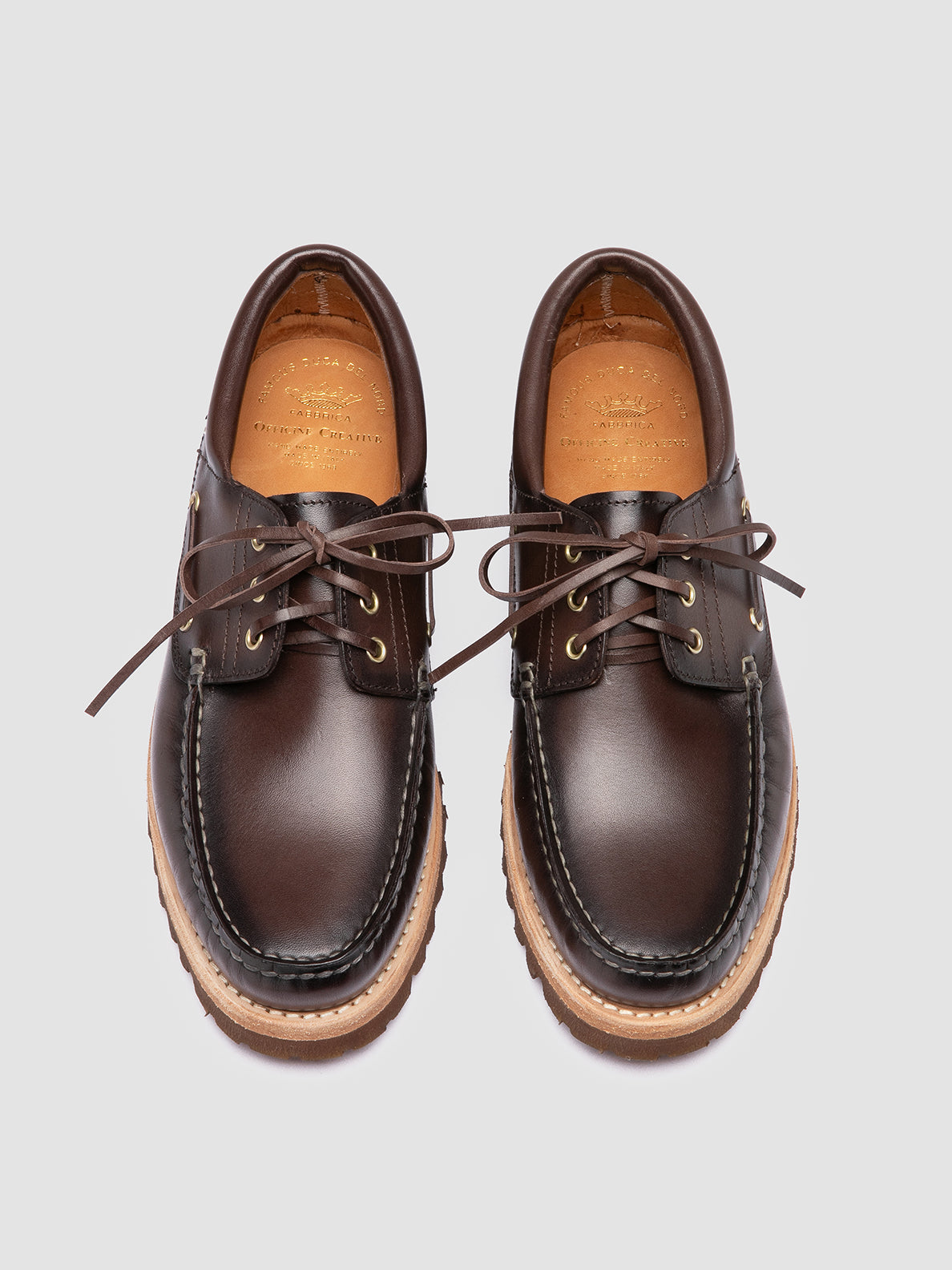 The Heritage Flexi 001 boat shoes blend traditional craftsmanship with modern durability. Handmade from airbrushed brown leather, they feature rawhide lacing, side eyelets and a natural rubber sole for grip and flexibility.