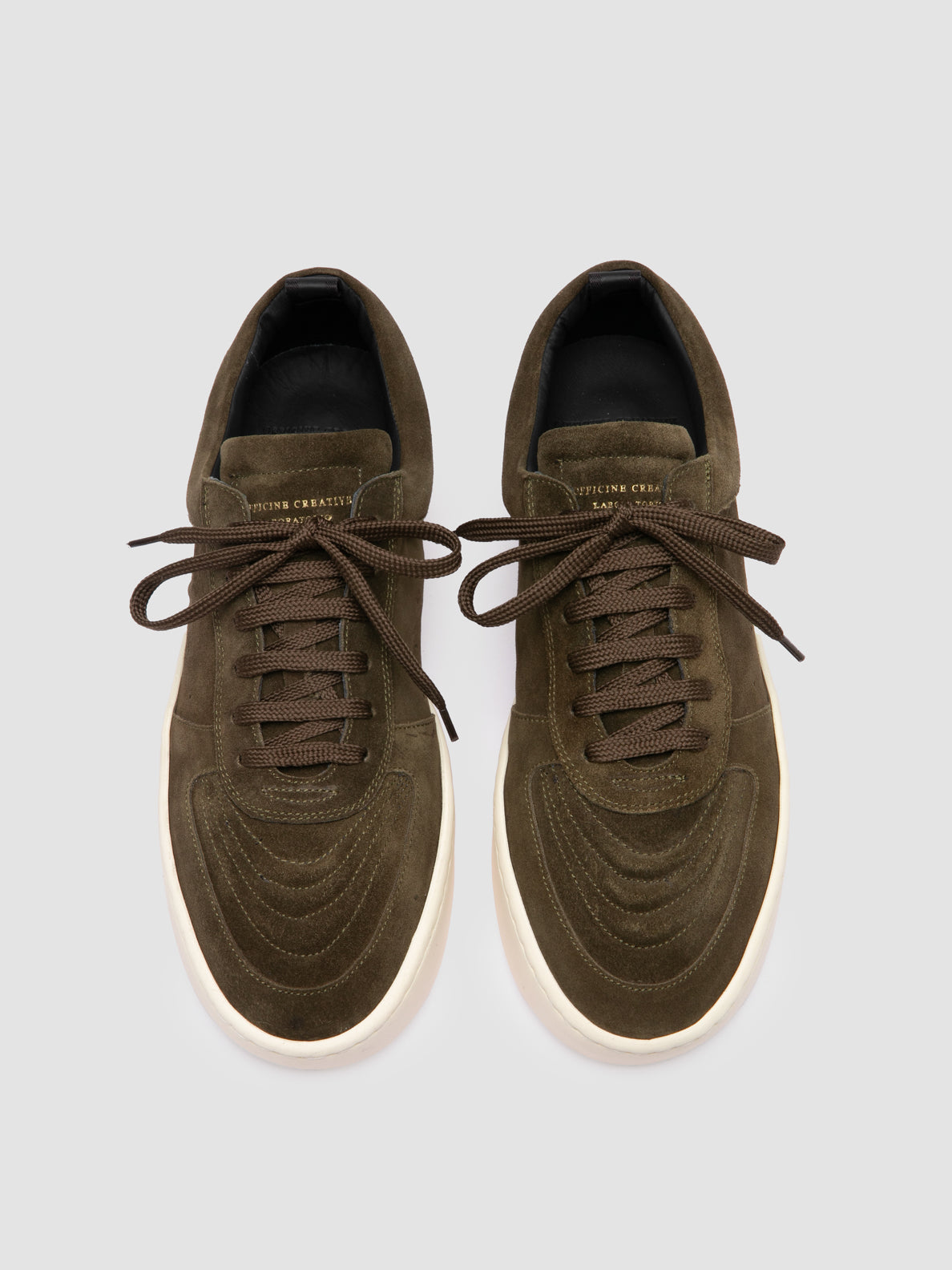 The Krab 001 sneakers combine a sporty attitude with elevated craftsmanship. Handmade in green suede with stitched detailing, they sit on an extra-light EVA sole in contrast white for a bold yet comfortable stride.