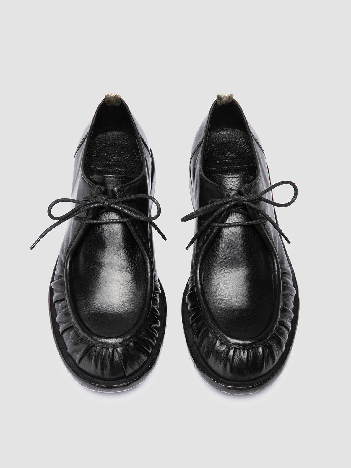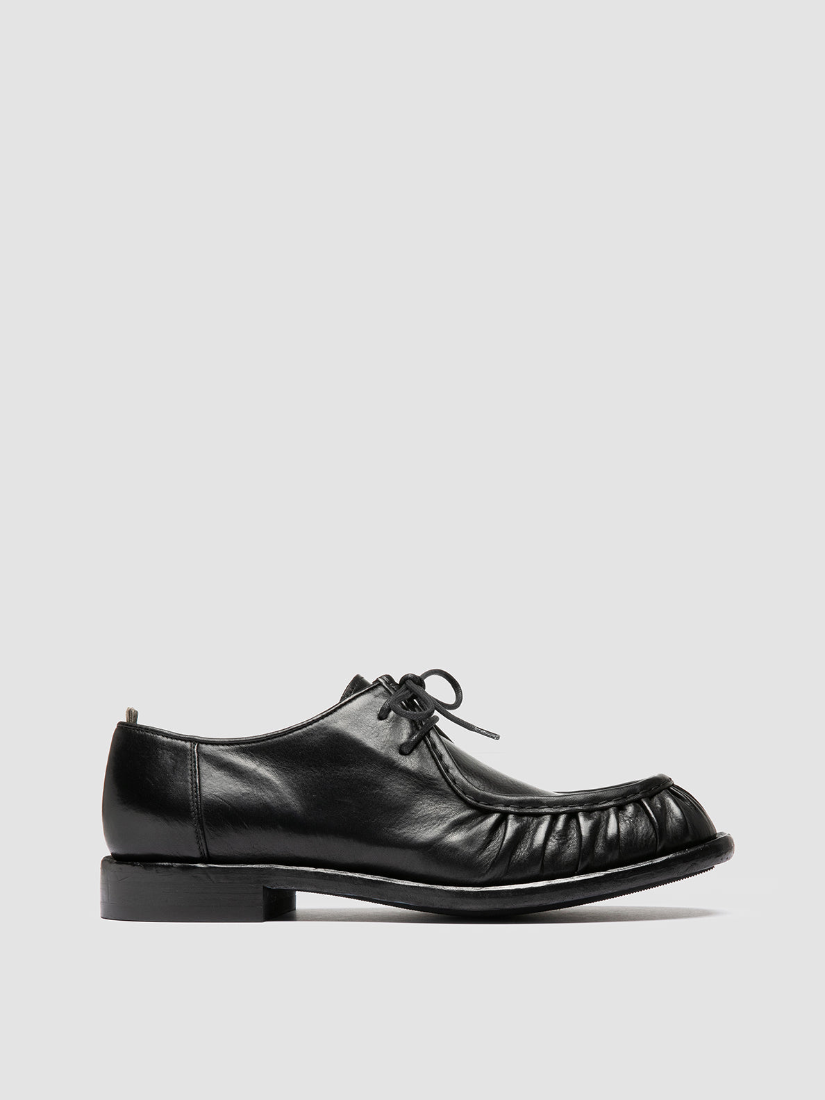 The Rugged 010 derby shoes combine understated elegance with artisanal details. Made from black leather, they feature a refined pleating along the toe, with a lace-up design and leather sole to complete the silhouette.